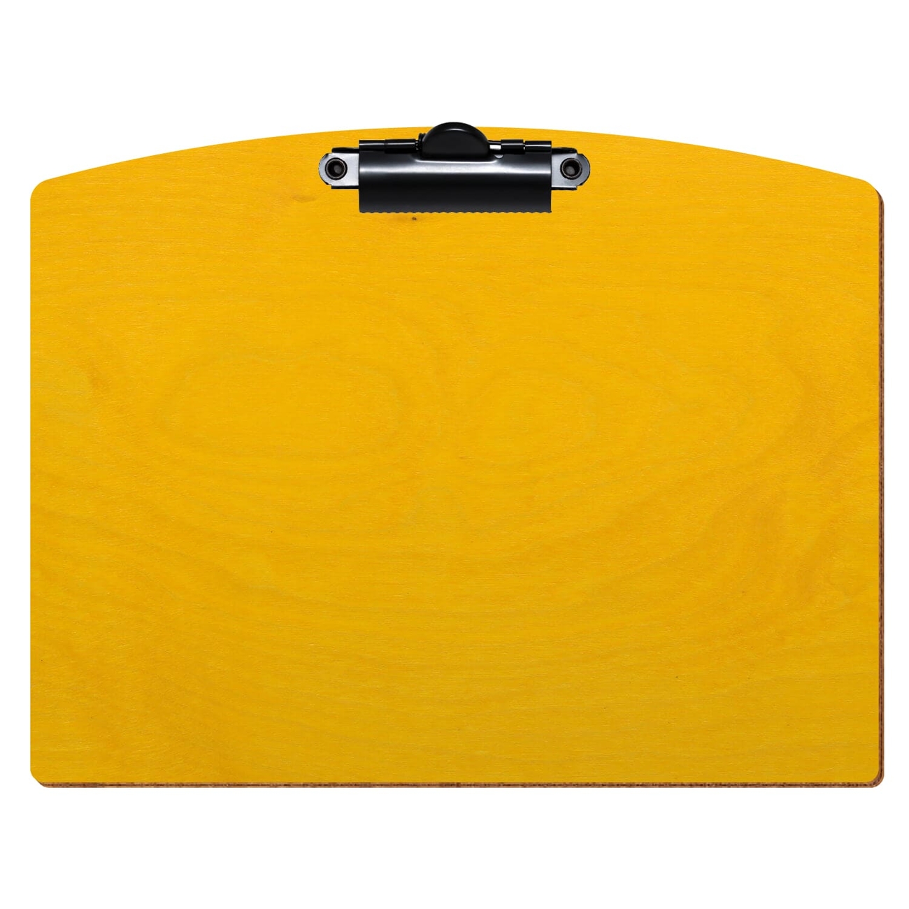 gelbes Holzklemmbrett, farbiges Klemmbrett, lackierte Schreibunterlage, Clipboard Segmentform, Speisekartenhalter mit Klemme, Schreibunterlage aus Holz