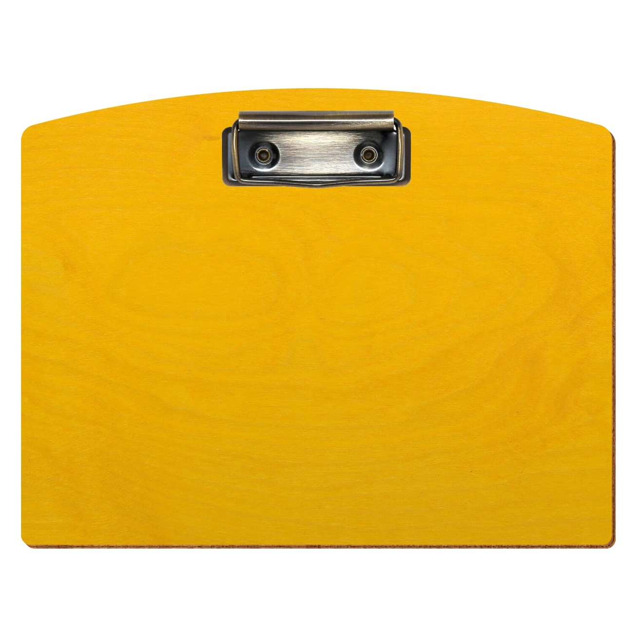 gelbes Holzklemmbrett, farbiges Klemmbrett, lackierte Schreibunterlage, Clipboard Segmentform, Speisekartenhalter mit Klemme, Schreibunterlage aus Holz