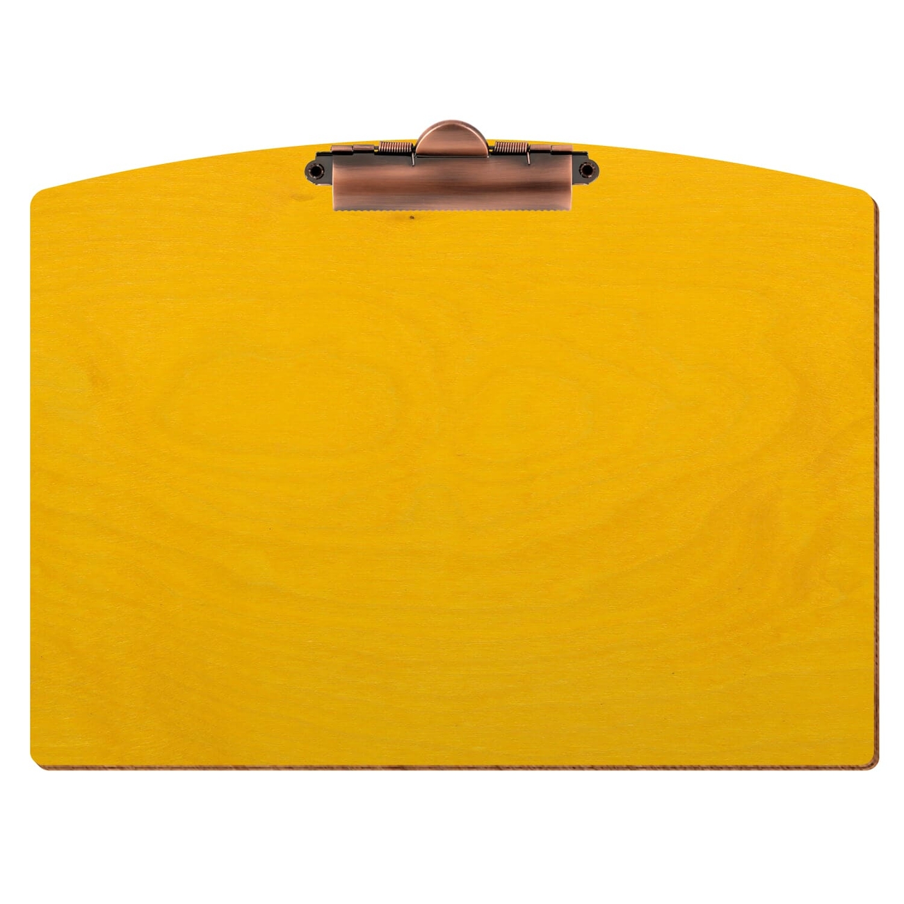 gelbes Holzklemmbrett, farbiges Klemmbrett, lackierte Schreibunterlage, Clipboard Segmentform, Speisekartenhalter mit Klemme, Schreibunterlage aus Holz