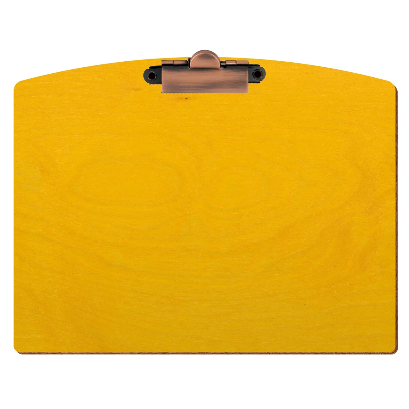 gelbes Holzklemmbrett, farbiges Klemmbrett, lackierte Schreibunterlage, Clipboard Segmentform, Speisekartenhalter mit Klemme, Schreibunterlage aus Holz