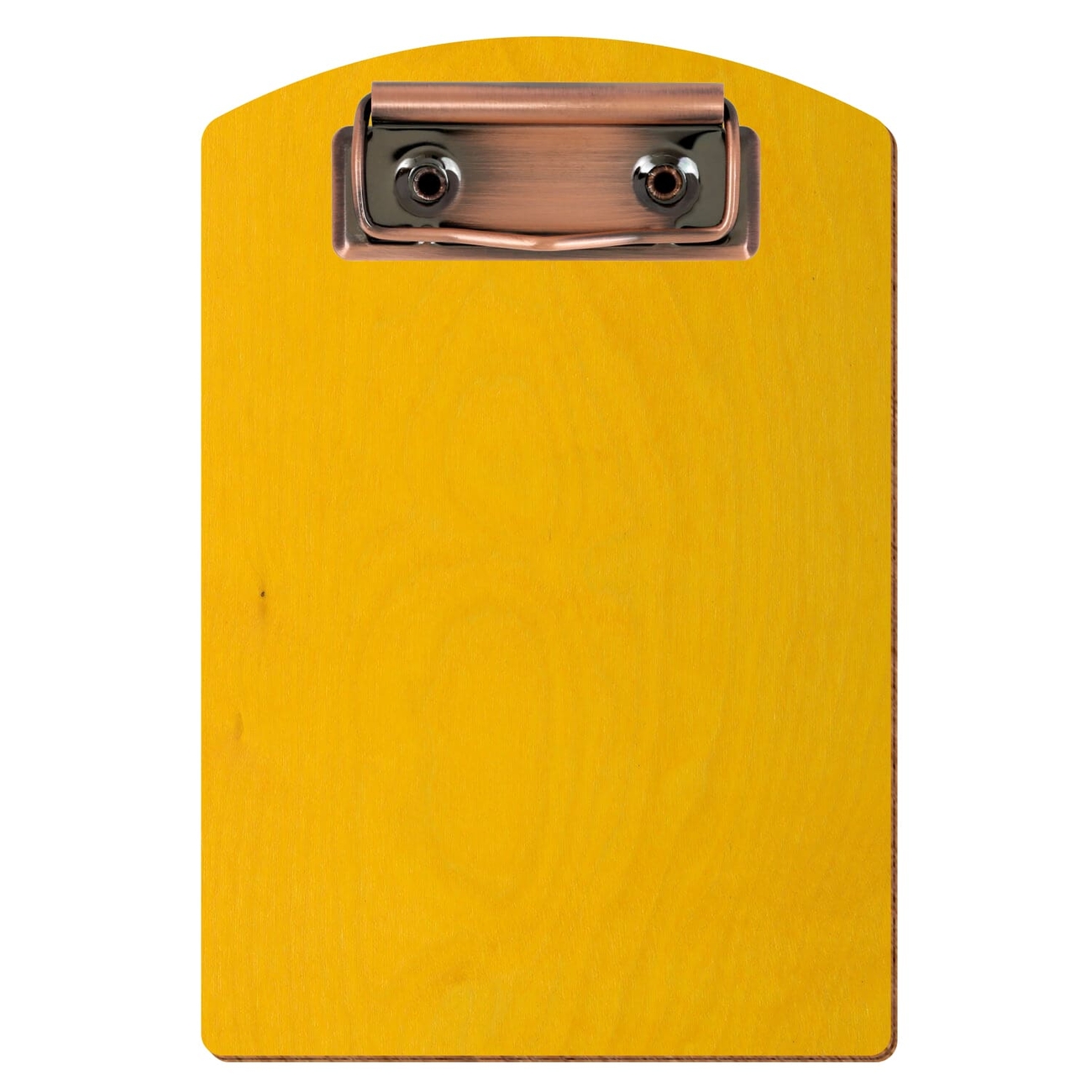 gelbes Holzklemmbrett, farbiges Klemmbrett, lackierte Schreibunterlage, Clipboard Segmentform, Speisekartenhalter mit Klemme, Schreibunterlage aus Holz
