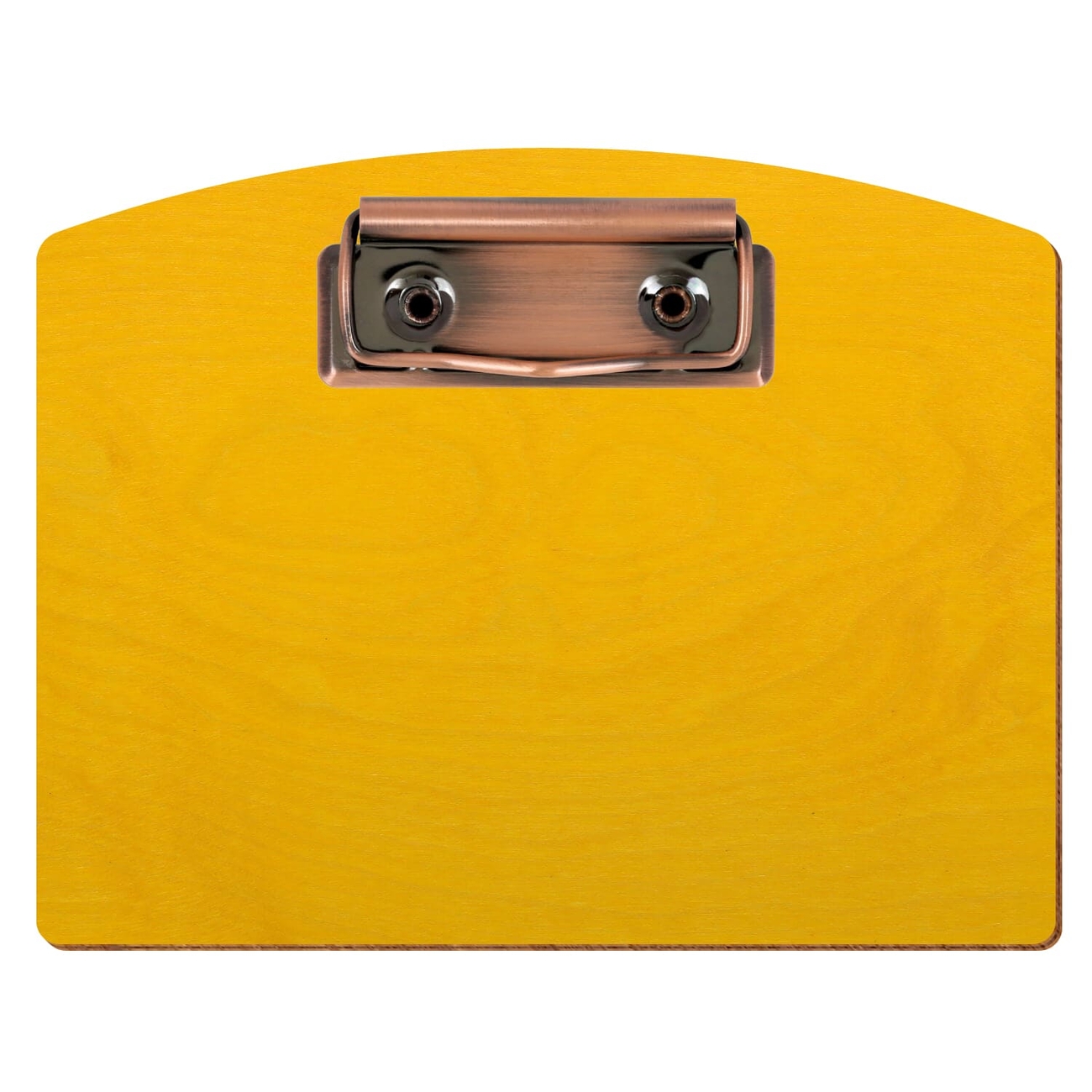 gelbes Holzklemmbrett, farbiges Klemmbrett, lackierte Schreibunterlage, Clipboard Segmentform, Speisekartenhalter mit Klemme, Schreibunterlage aus Holz