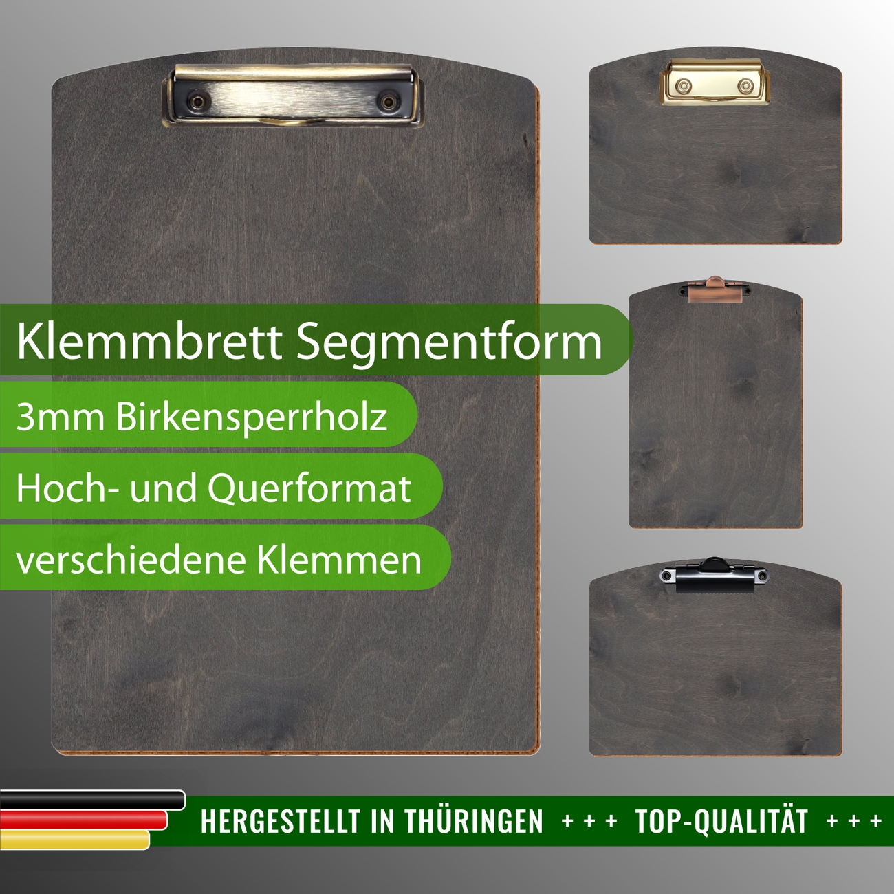 graues Holzklemmbrett, farbiges Klemmbrett, lackierte Schreibunterlage, Clipboard Segmentform, Speisekartenhalter mit Klemme, Schreibunterlage aus HolzDazu passend...