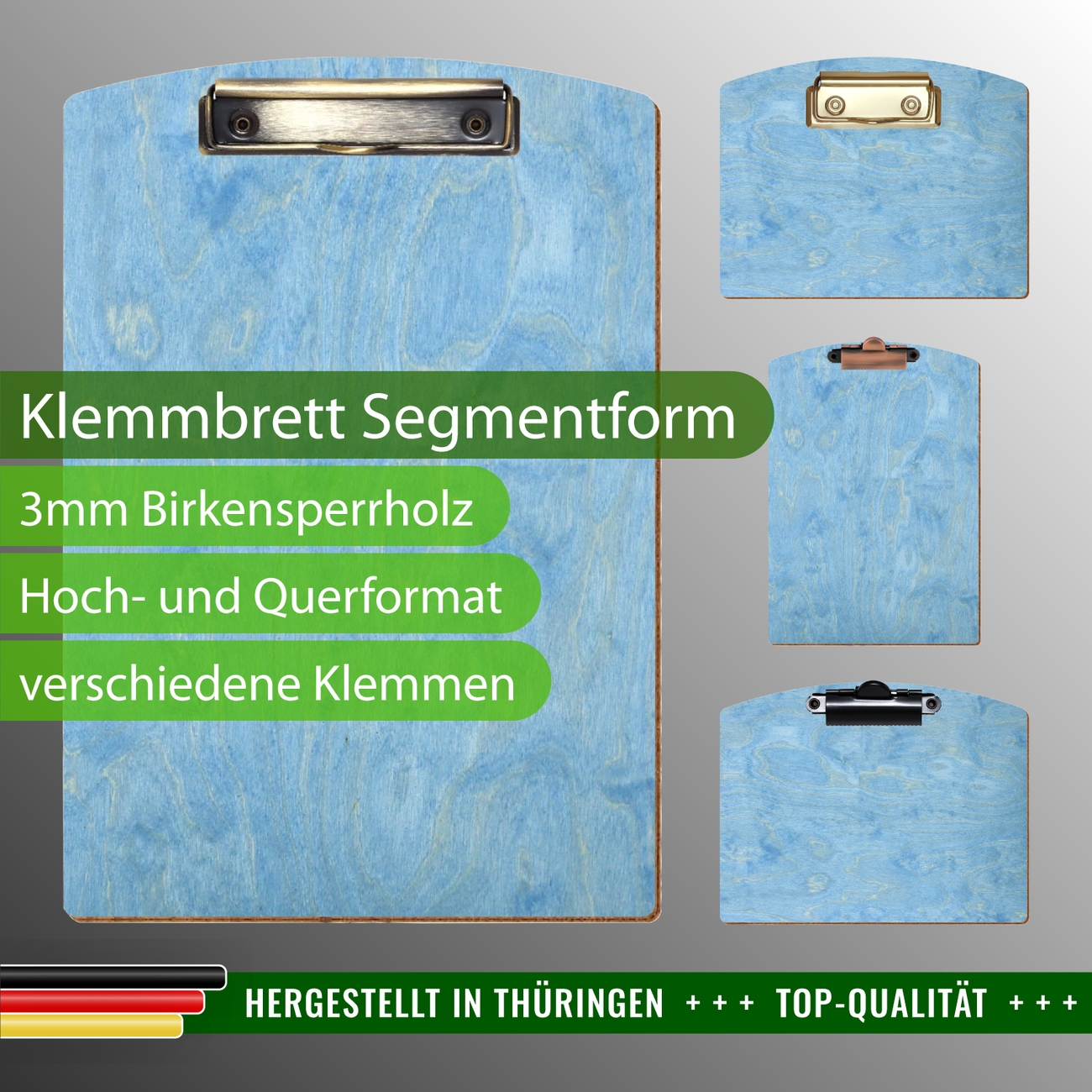 + Lieferumfang: ein Klemmbrett in ausgewählter Größe und Clipfarbe