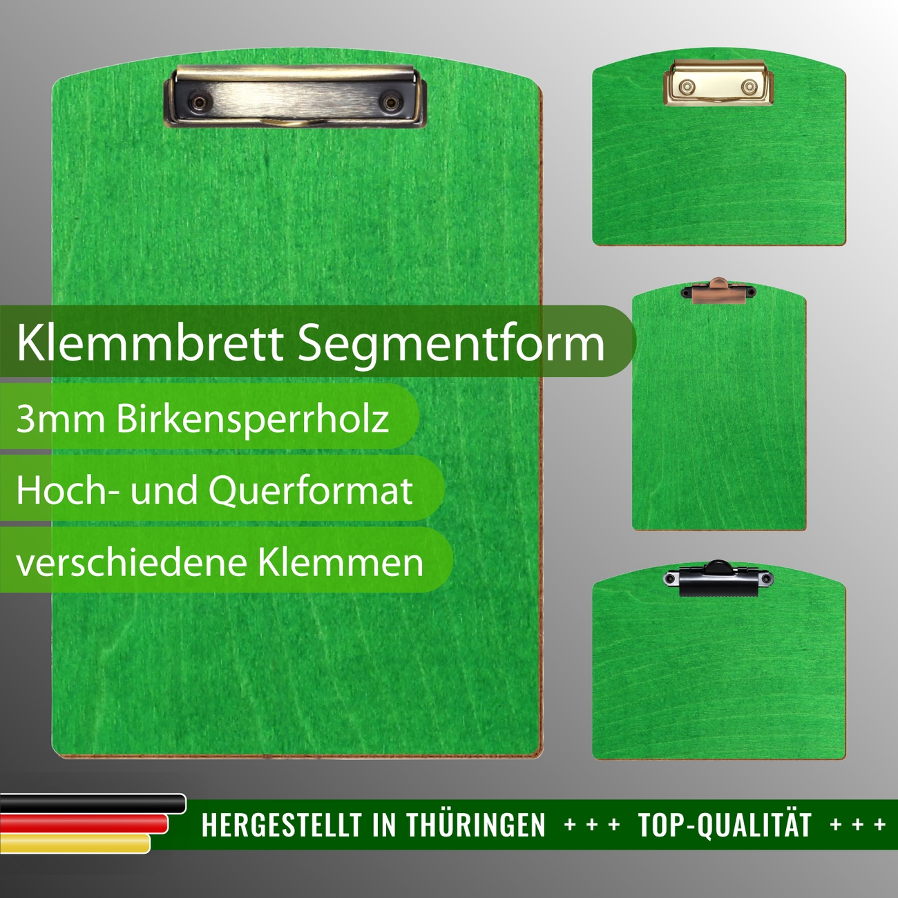 + Lieferumfang: ein Klemmbrett in ausgewählter Größe und Clipfarbe