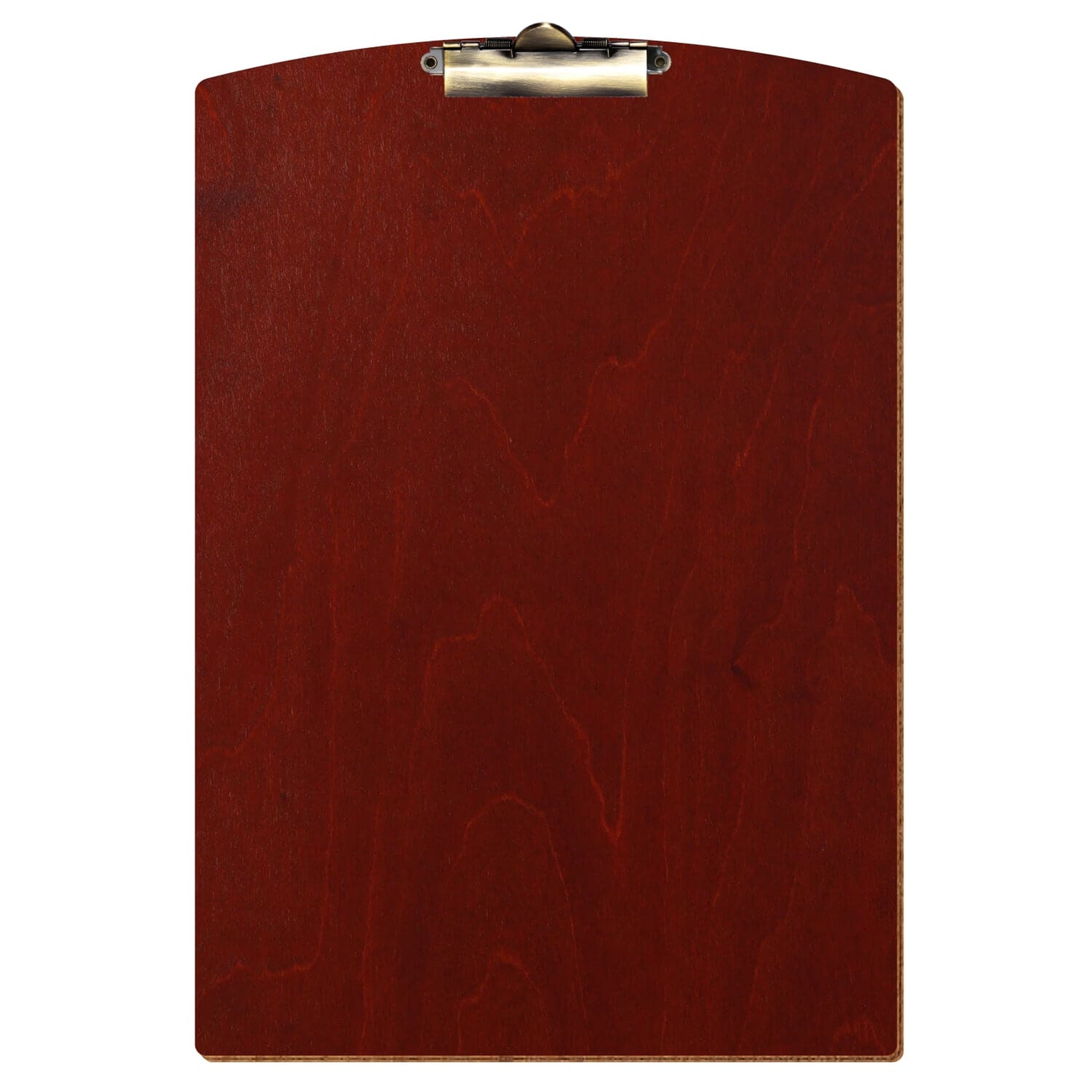 Holzklemmbrett Kirschbaum dunkel, farbiges Klemmbrett, lackierte Schreibunterlage, Clipboard Segmentform, Speisekartenhalter mit Klemme, Schreibunterlage aus HolzDazu passend...