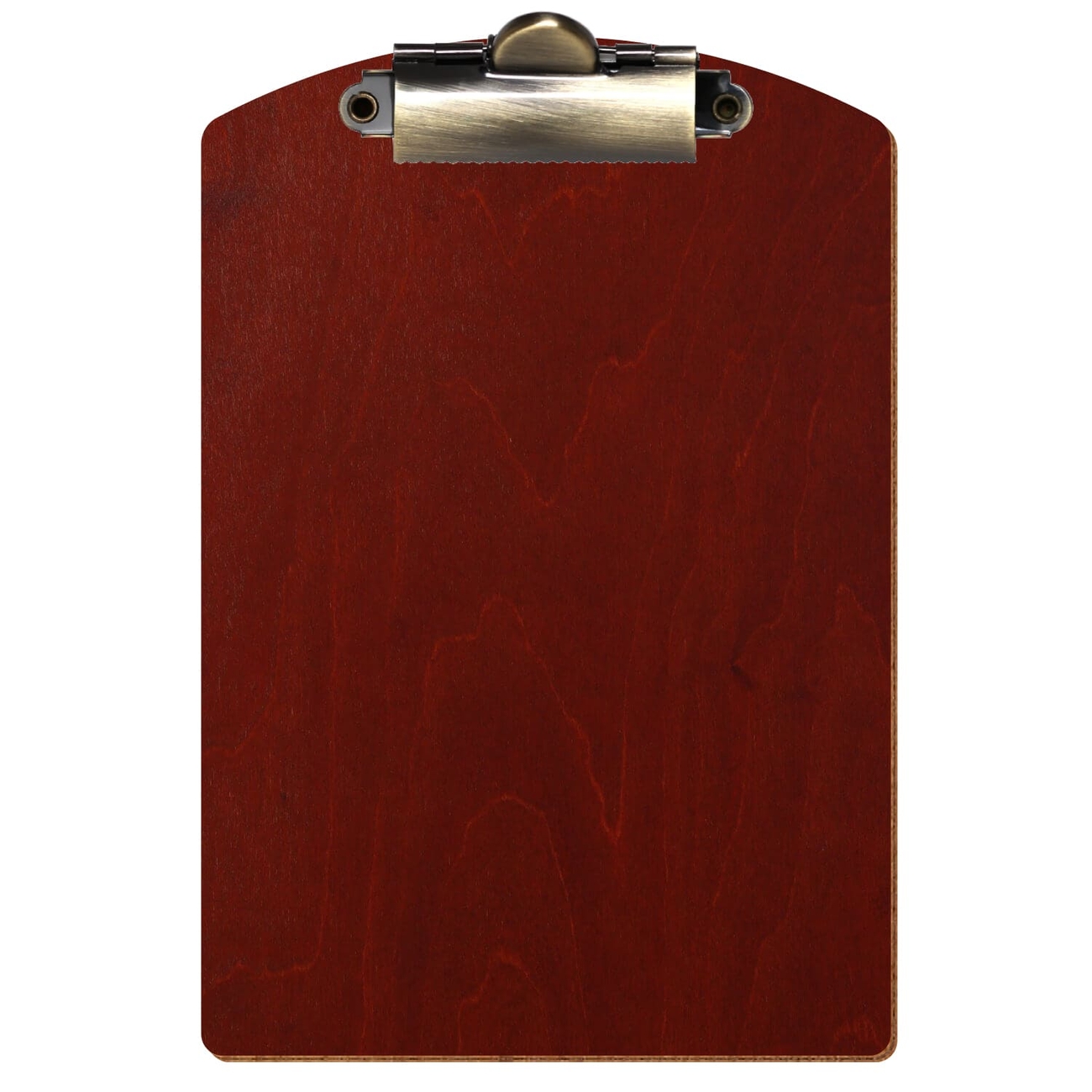 Holzklemmbrett Kirschbaum dunkel, farbiges Klemmbrett, lackierte Schreibunterlage, Clipboard Segmentform, Speisekartenhalter mit Klemme, Schreibunterlage aus HolzDazu passend...