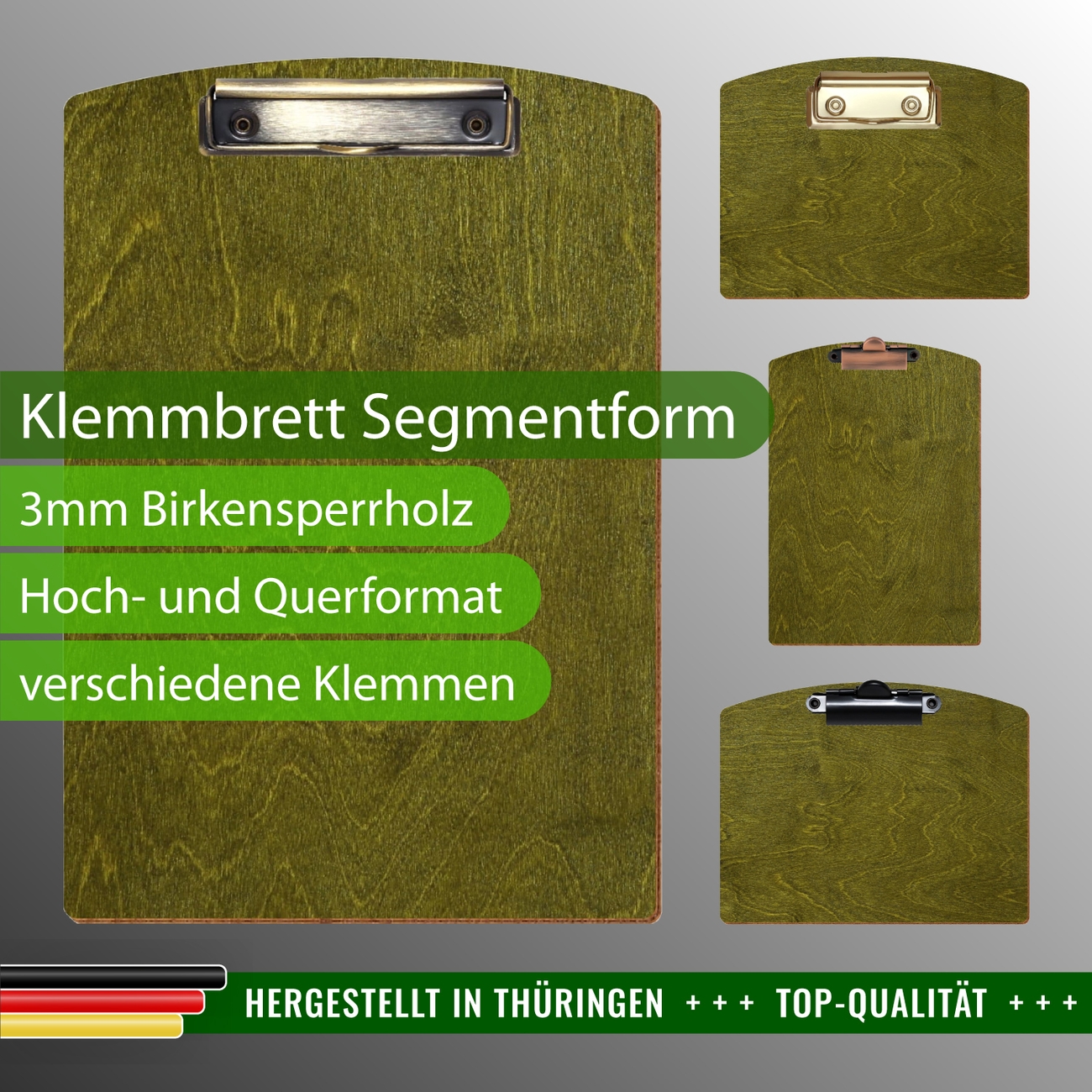 olivgrünes Holzklemmbrett, farbiges Klemmbrett, lackierte Schreibunterlage, Clipboard Segmentform, Speisekartenhalter mit Klemme, Schreibunterlage aus HolzDazu passend...