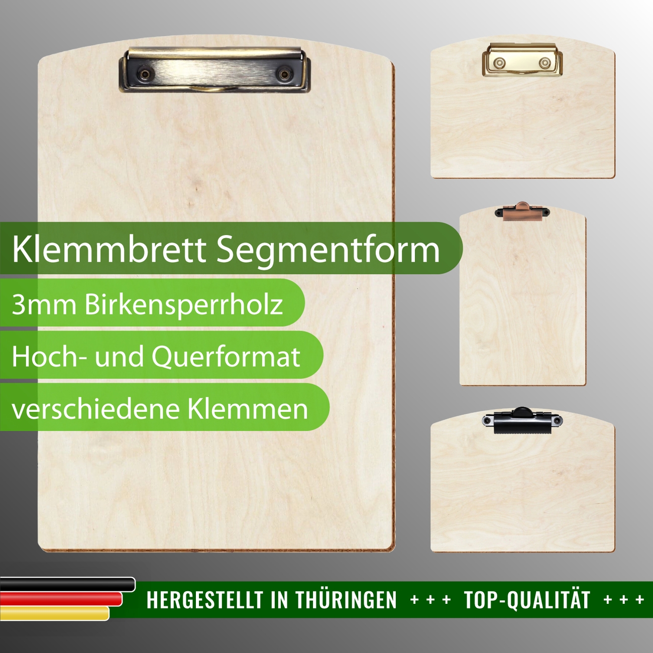 + Lieferumfang: ein Klemmbrett in ausgewählter Größe und Clipfarbe