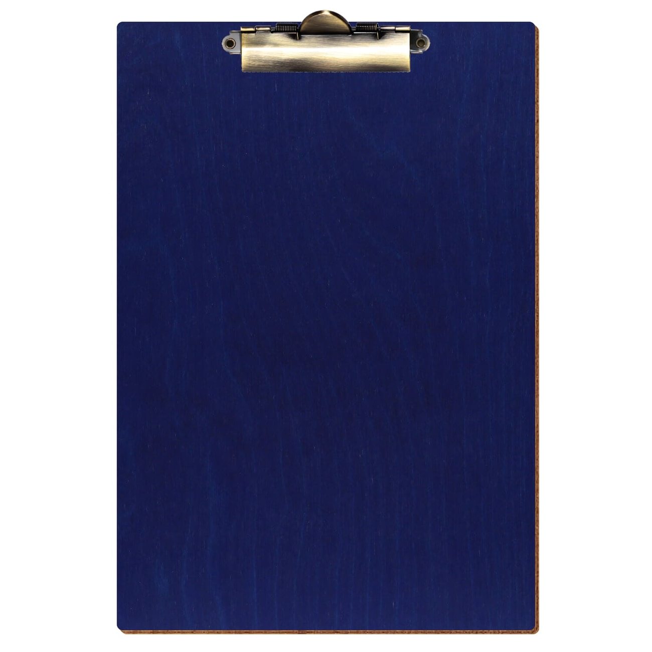 dunkelblaues Holzklemmbrett, farbiges Klemmbrett, lackierte Schreibunterlage, Clipboard Standardform, Speisekartenhalter mit Klemme, Schreibunterlage aus HolzDazu passend...