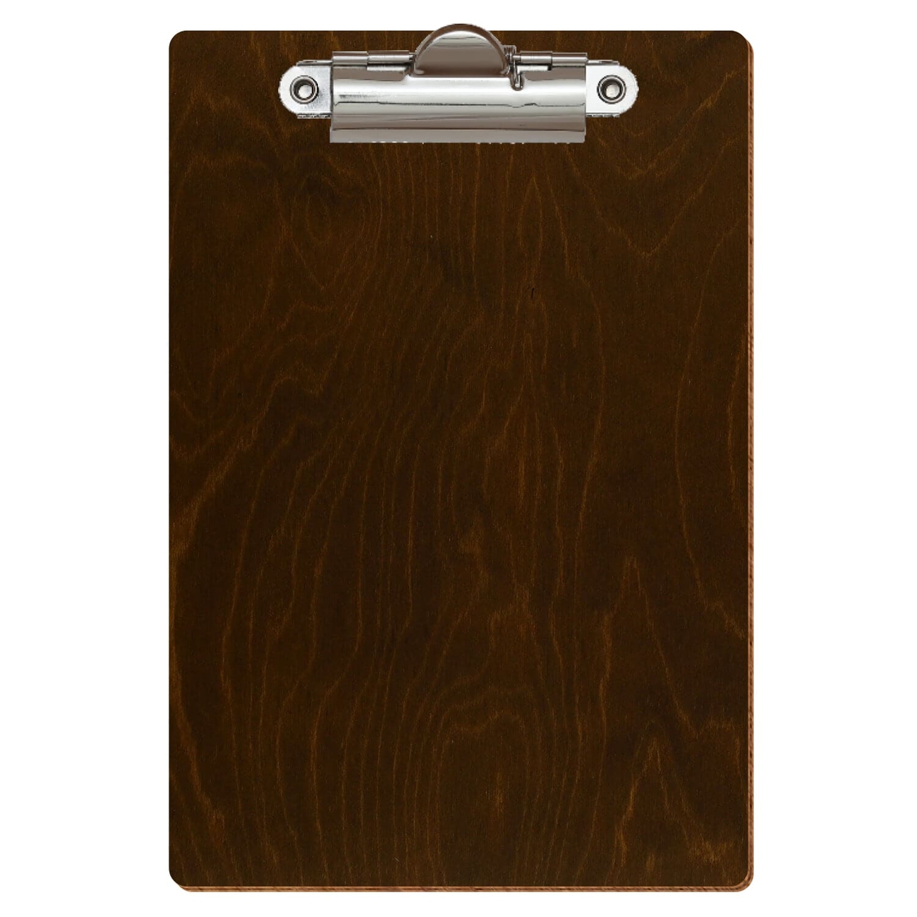 Klemmbrett, Clipboard, Standardform, Holzklemmbrett, Holz, Unterlage, Schreibunterlage, Schreibbrett, Schreibplatte, Stifthalter, dunkelbraun