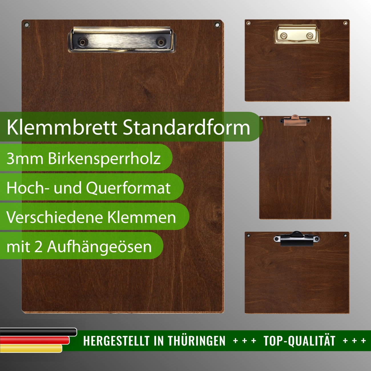 + Lieferumfang: ein Klemmbrett in ausgewählter Größe und Clipfarbe