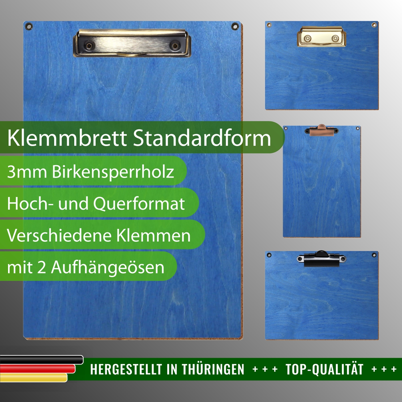 + Lieferumfang: ein Klemmbrett in ausgewählter Größe und Clipfarbe