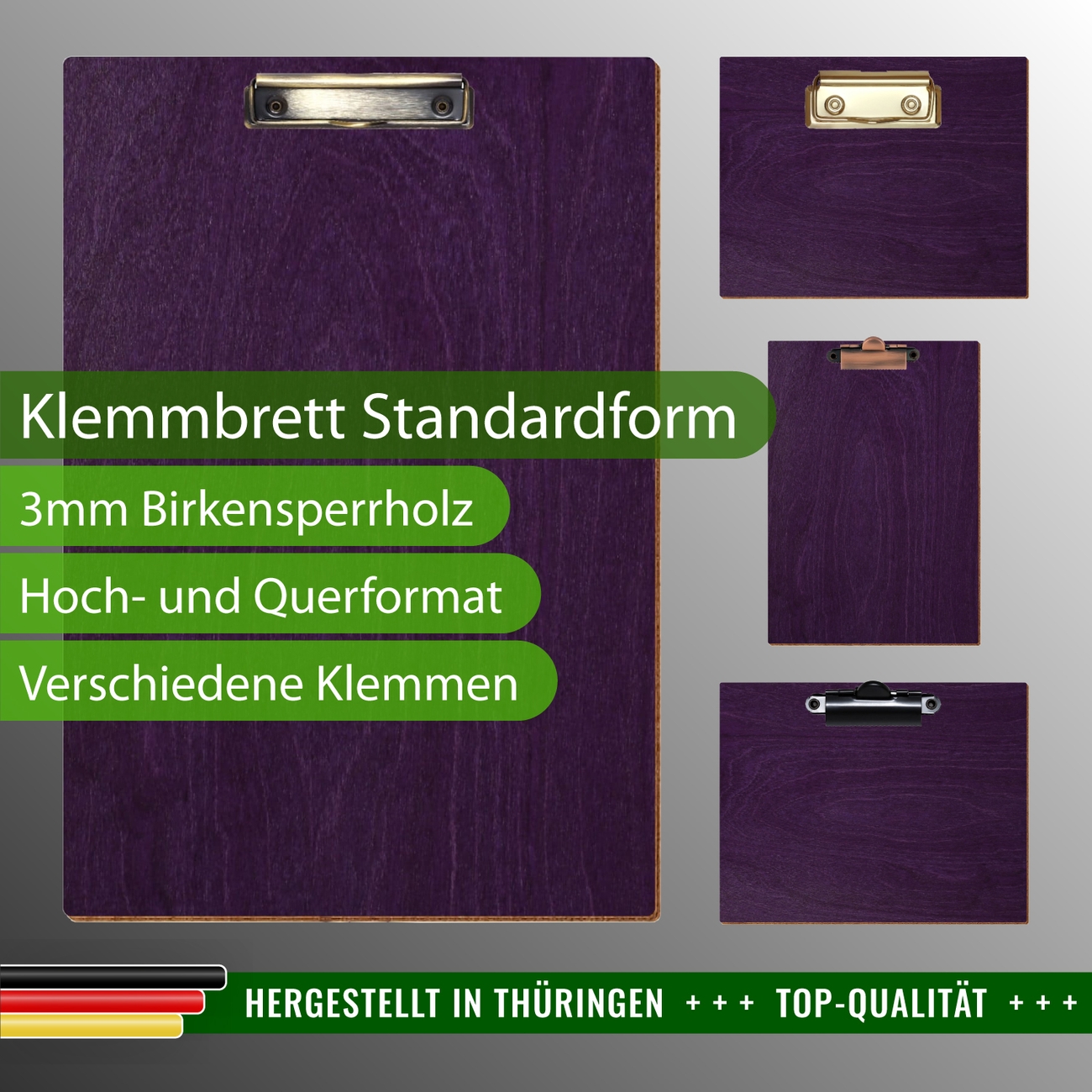 lila Holzklemmbrett, farbiges Klemmbrett, lackierte Schreibunterlage, Clipboard Standardform, Speisekartenhalter mit Klemme, Schreibunterlage aus HolzDazu passend...