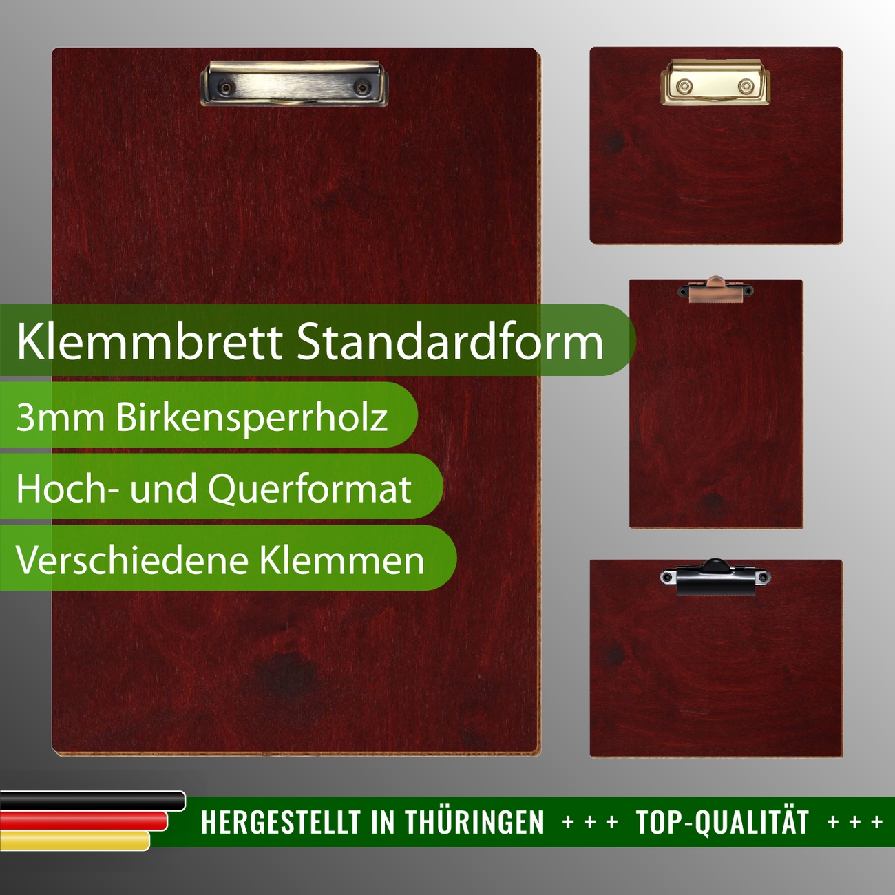Holzklemmbrett Mahagoni, farbiges Klemmbrett, lackierte Schreibunterlage, Clipboard Standardform, Speisekartenhalter mit Klemme, Schreibunterlage aus HolzDazu passend...