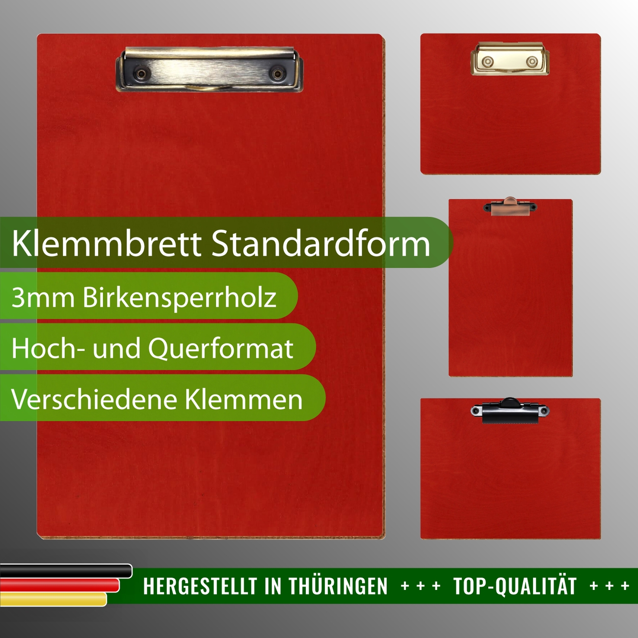 + Lieferumfang: ein Klemmbrett in ausgewählter Größe und Clipfarbe