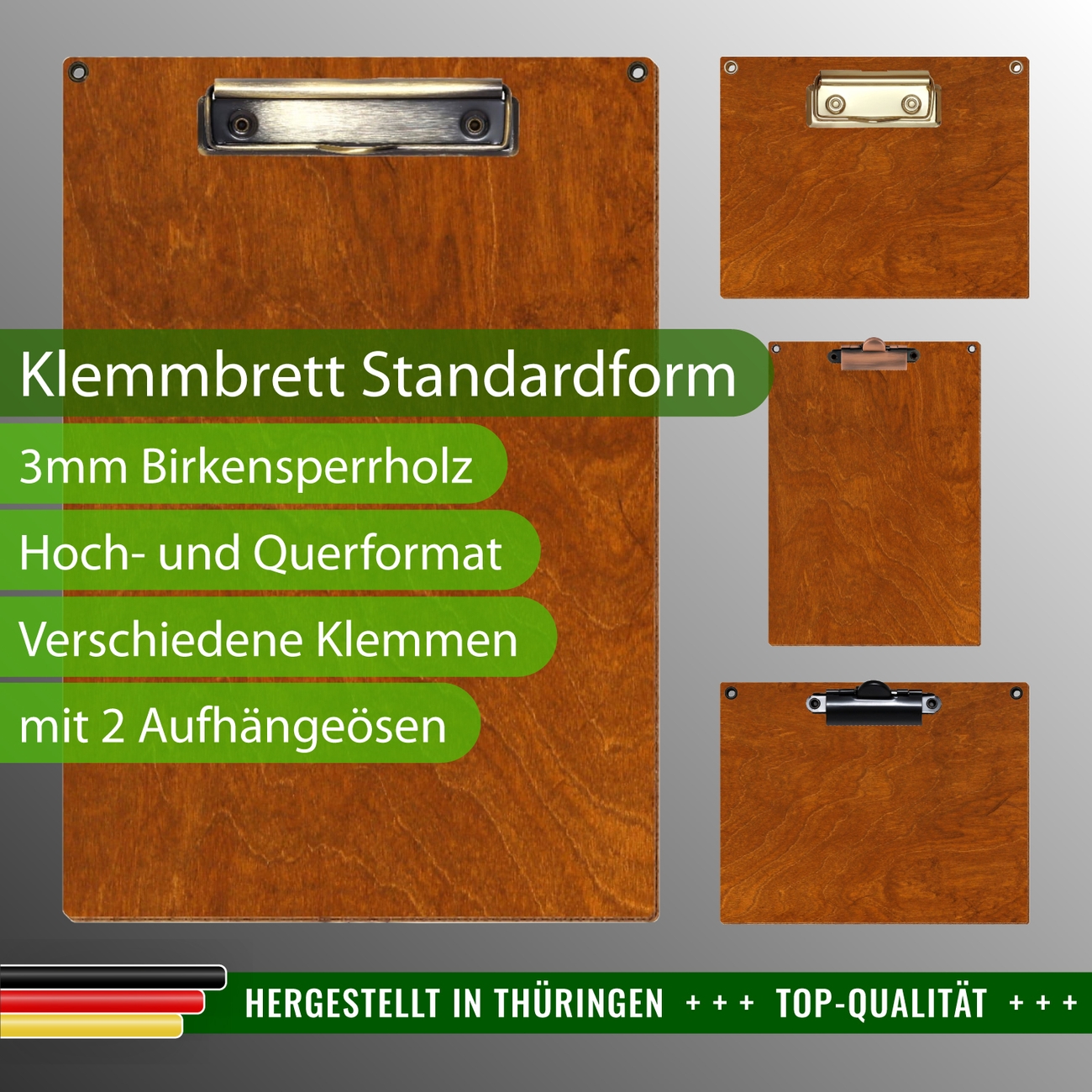 + Lieferumfang: ein Klemmbrett in ausgewählter Größe und Clipfarbe