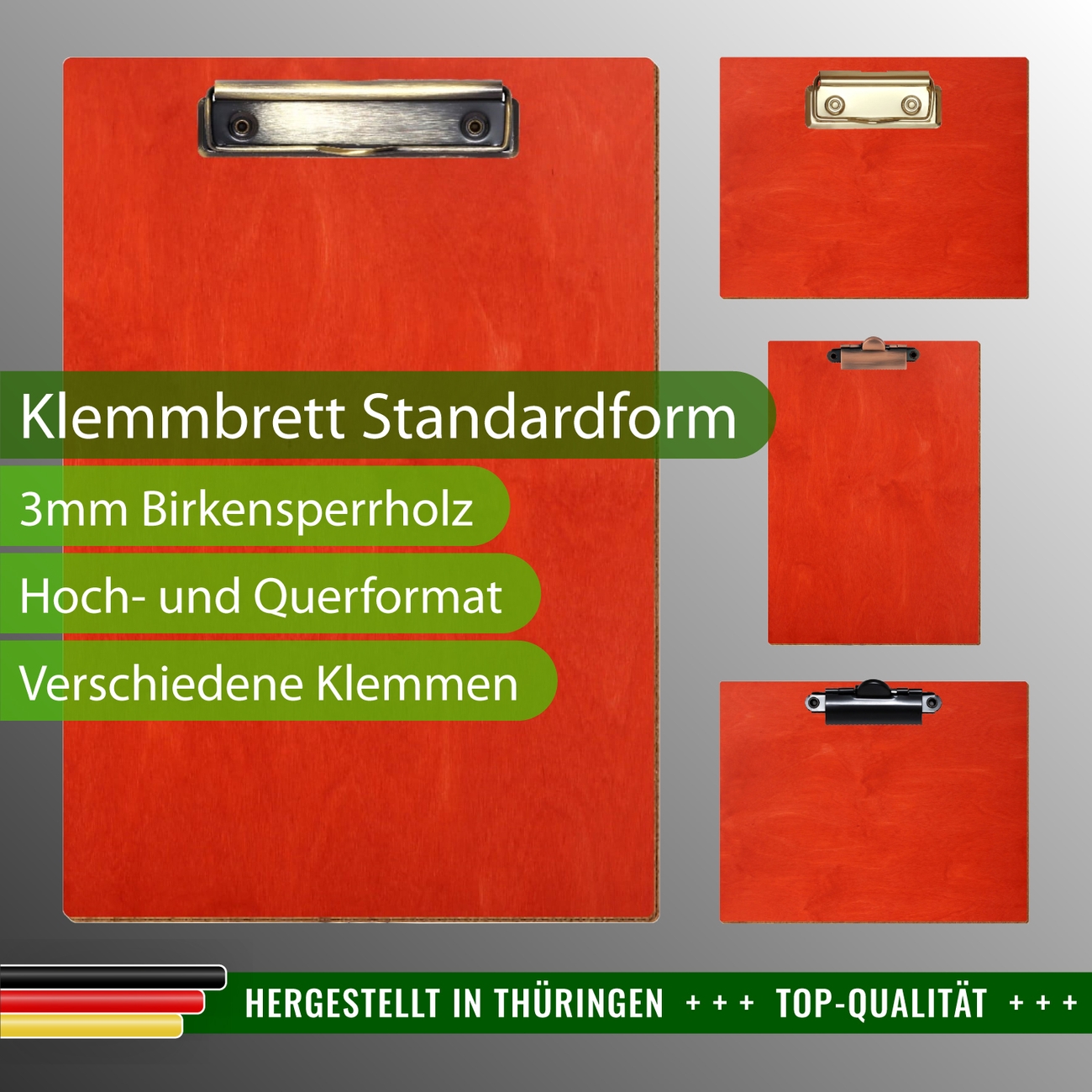 für DIN A3, A4, A5, A6 im Hoch- oder Querformat. Unsere Bütic Holz Klemmbretter aus 3mm Birkensperrholz sind mit Klarlack versiegelt.