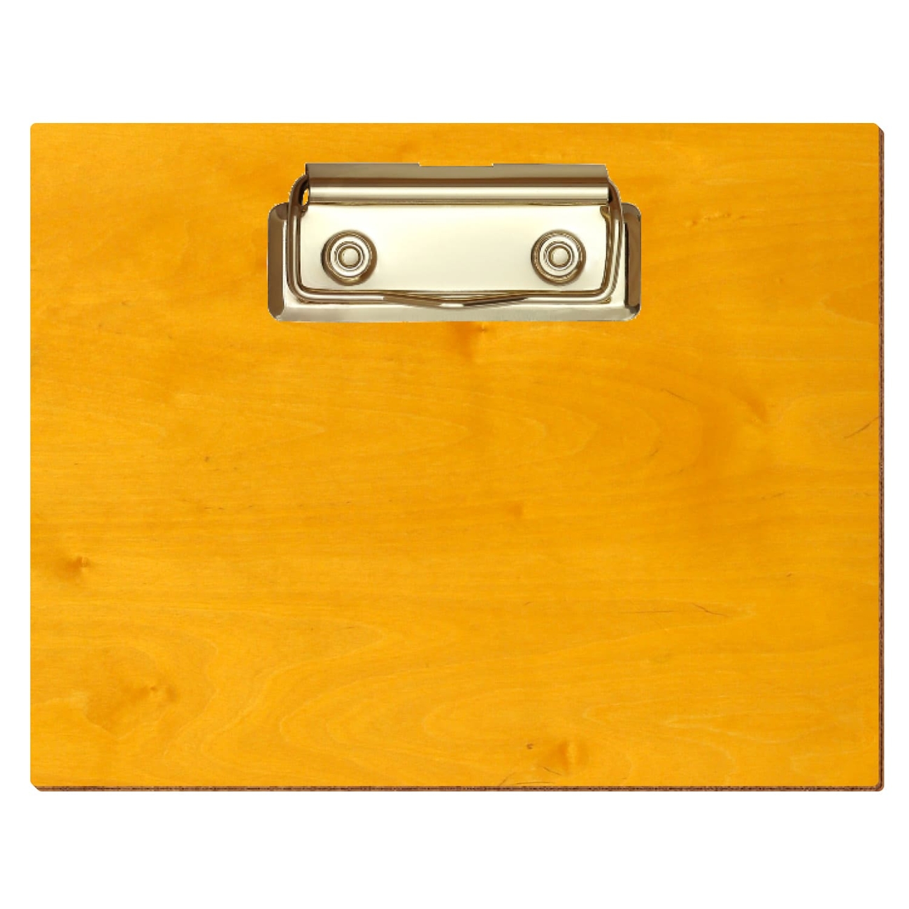 Klemmbrett, Clipboard, Standardform, Holzklemmbrett, Holz, Unterlage, Schreibunterlage, Schreibbrett, Schreibplatte, Stifthalter, gelb, zitronengelb, zitrusgelb, Zitrone