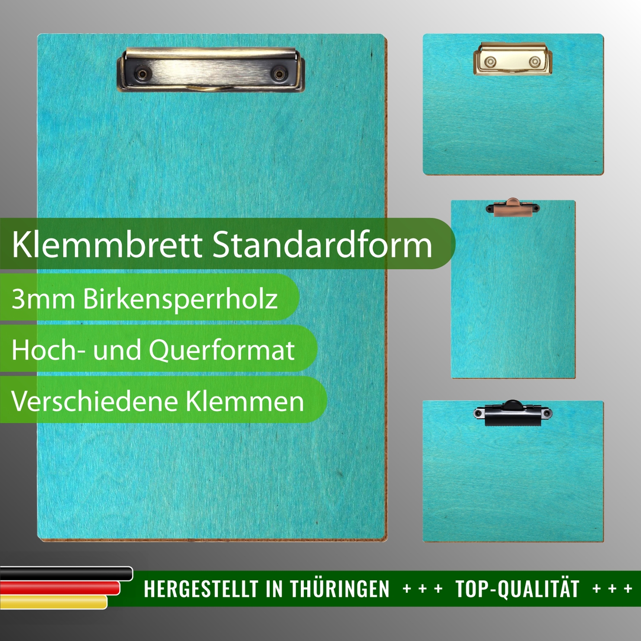 + Lieferumfang: ein Klemmbrett in ausgewählter Größe und Clipfarbe