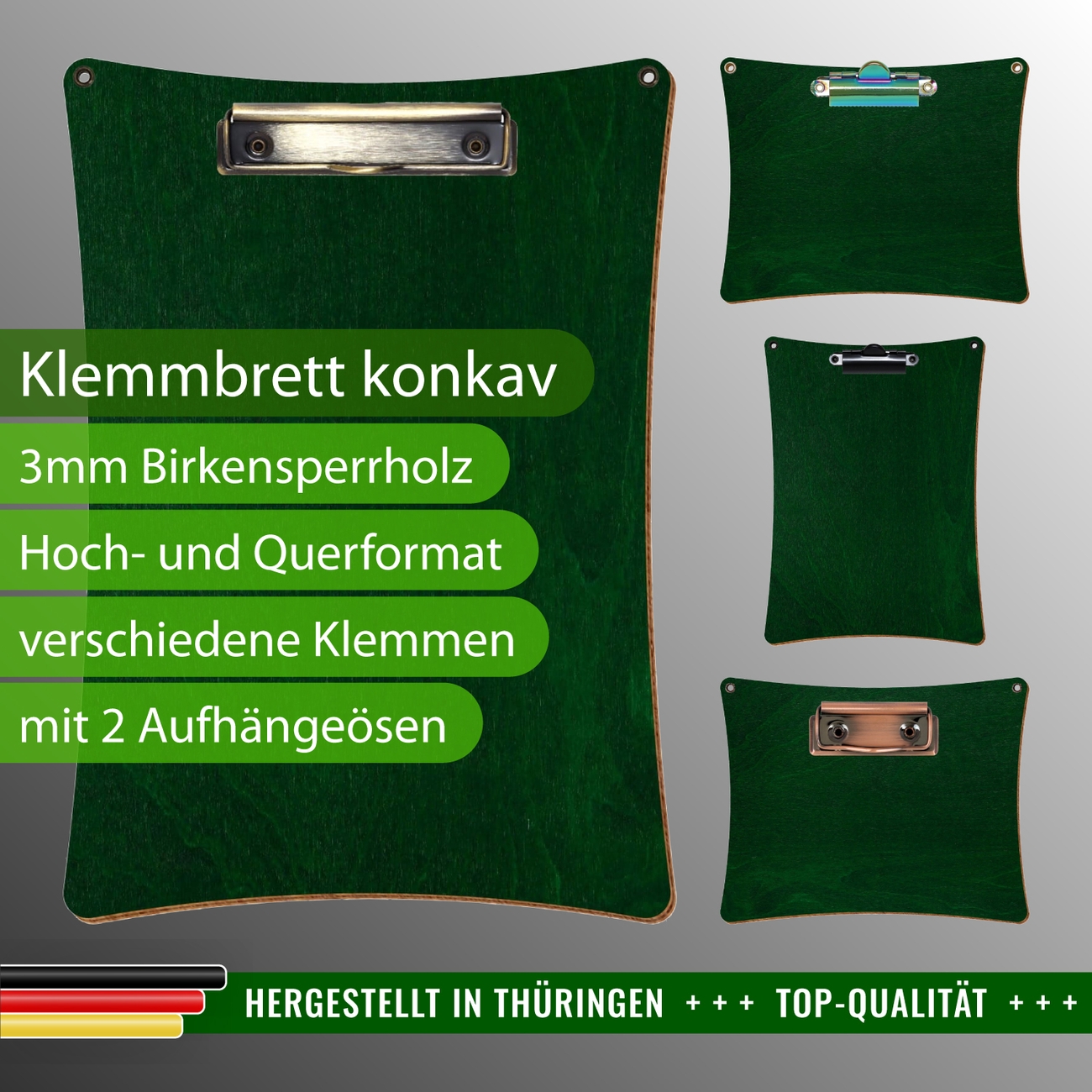 Klemmbrett konkav Dunkelgrün mit Ösen