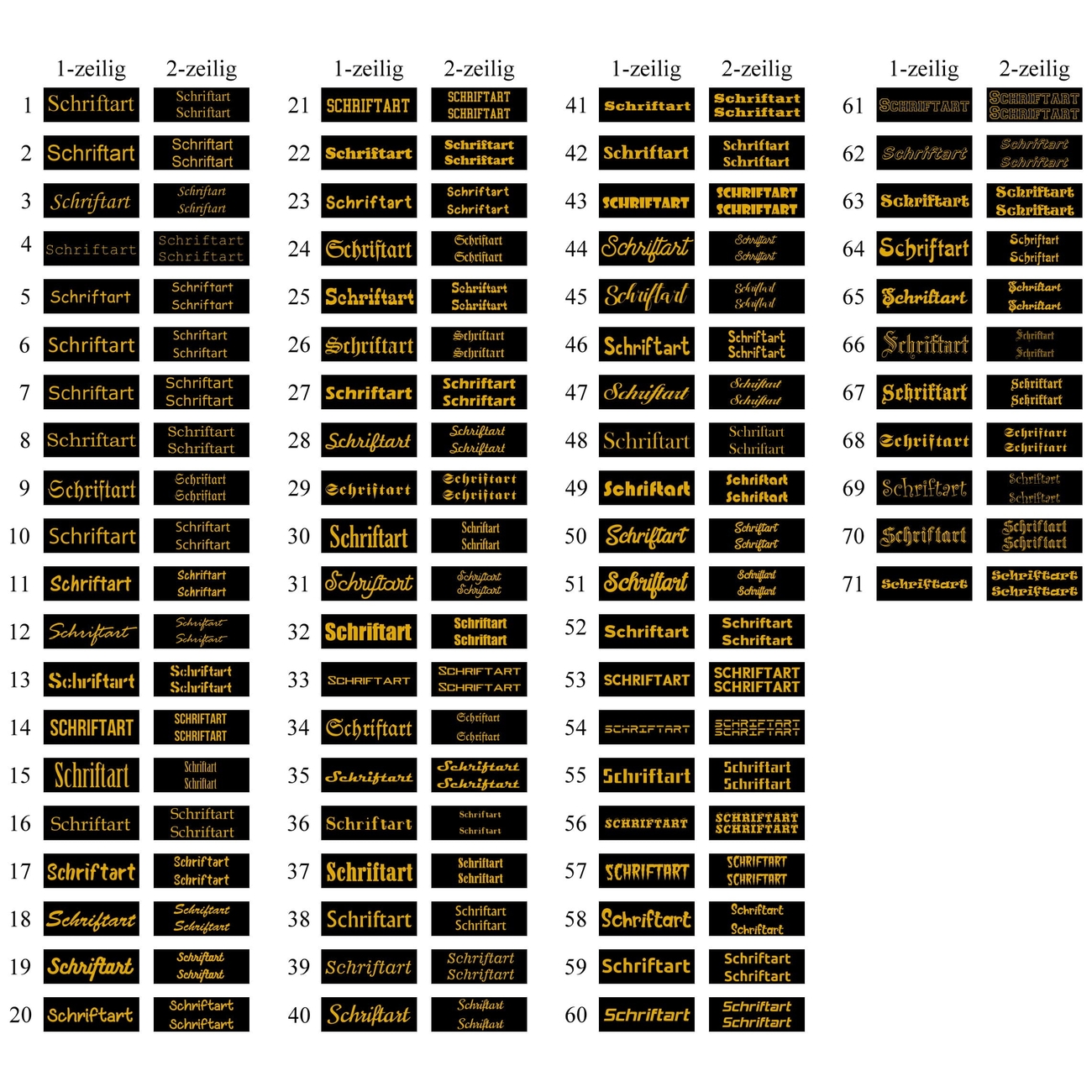 Sofern Sie uns keine Nummer mitteilen, verwenden wir als Standardschriftart die Nr. 3