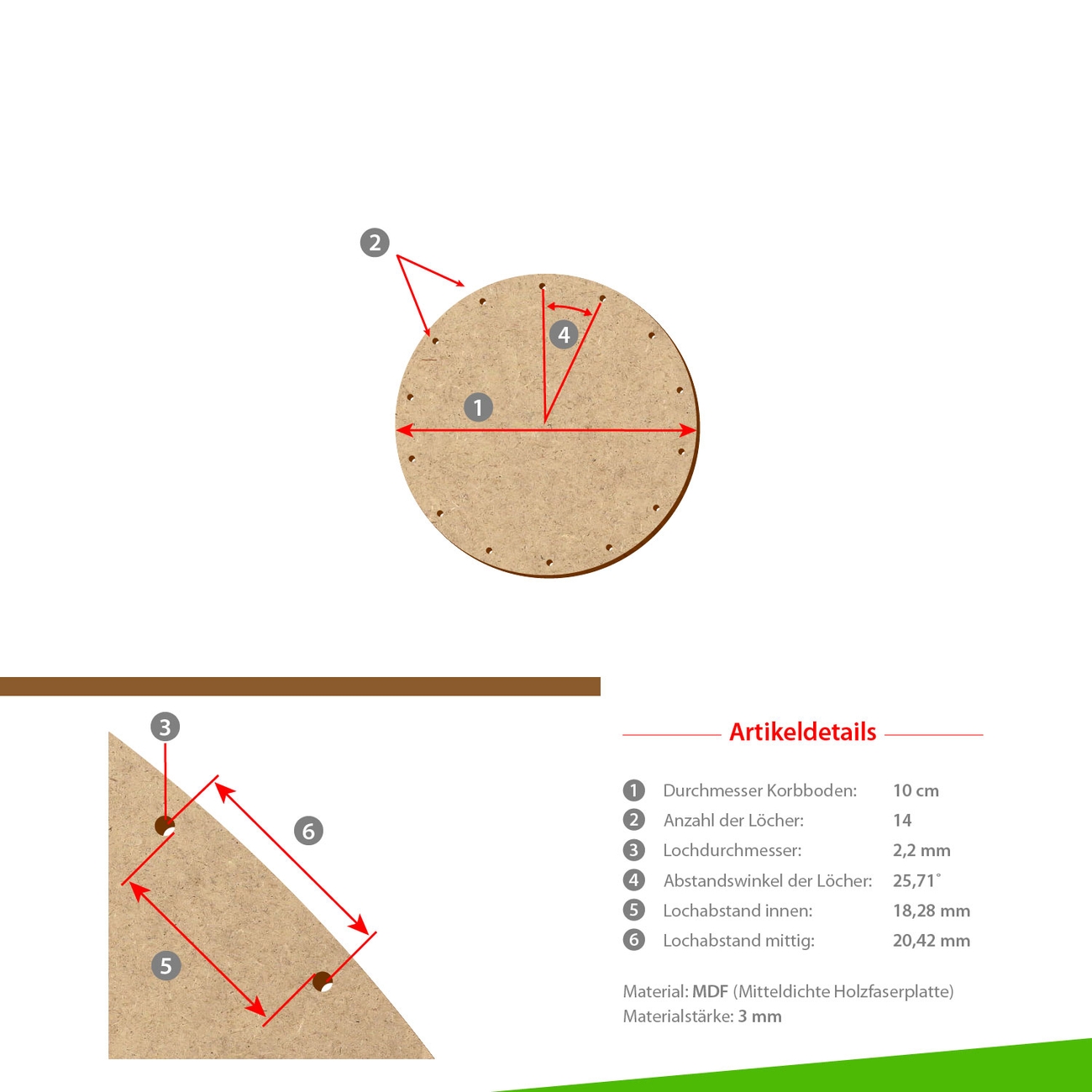 Unsere Korbböden werden aus stabilen und äußerst robusten MDF-Holzfaserplatten gefertigt.