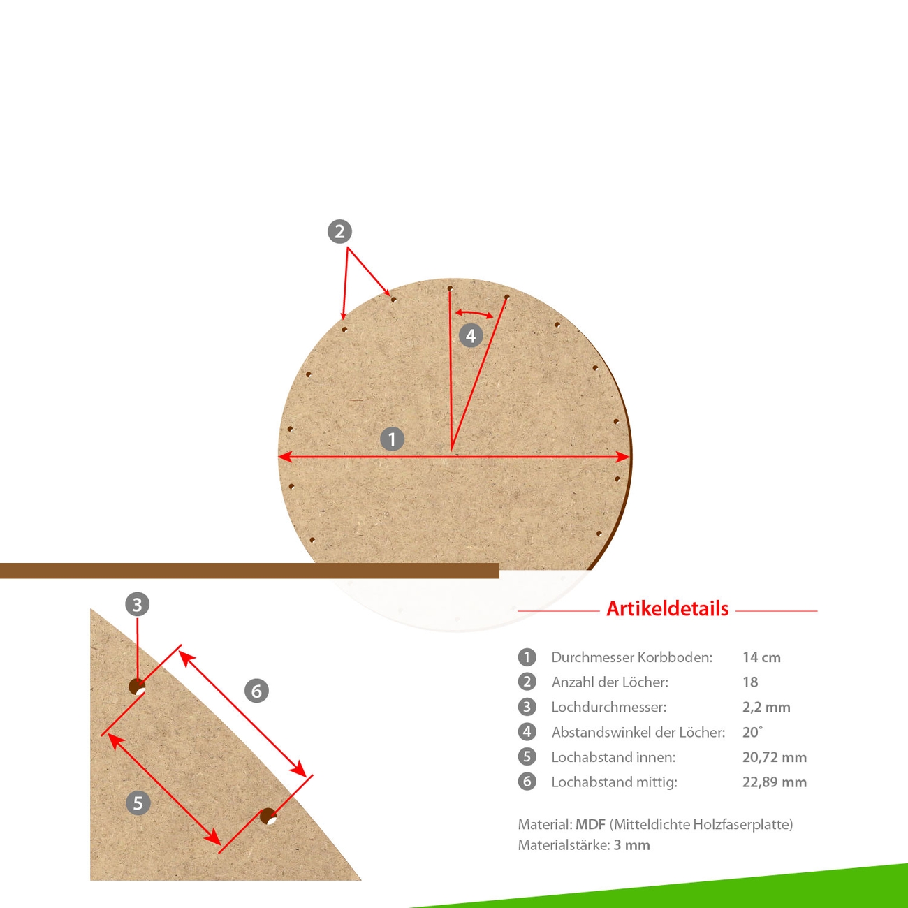 HDF/MDF Korbböden in kreisrunder Ausführung für 2mm Peddigrohr - Größen von 5-35cm wählbar - jeweils mit gerader und ungerader Lochanzahl