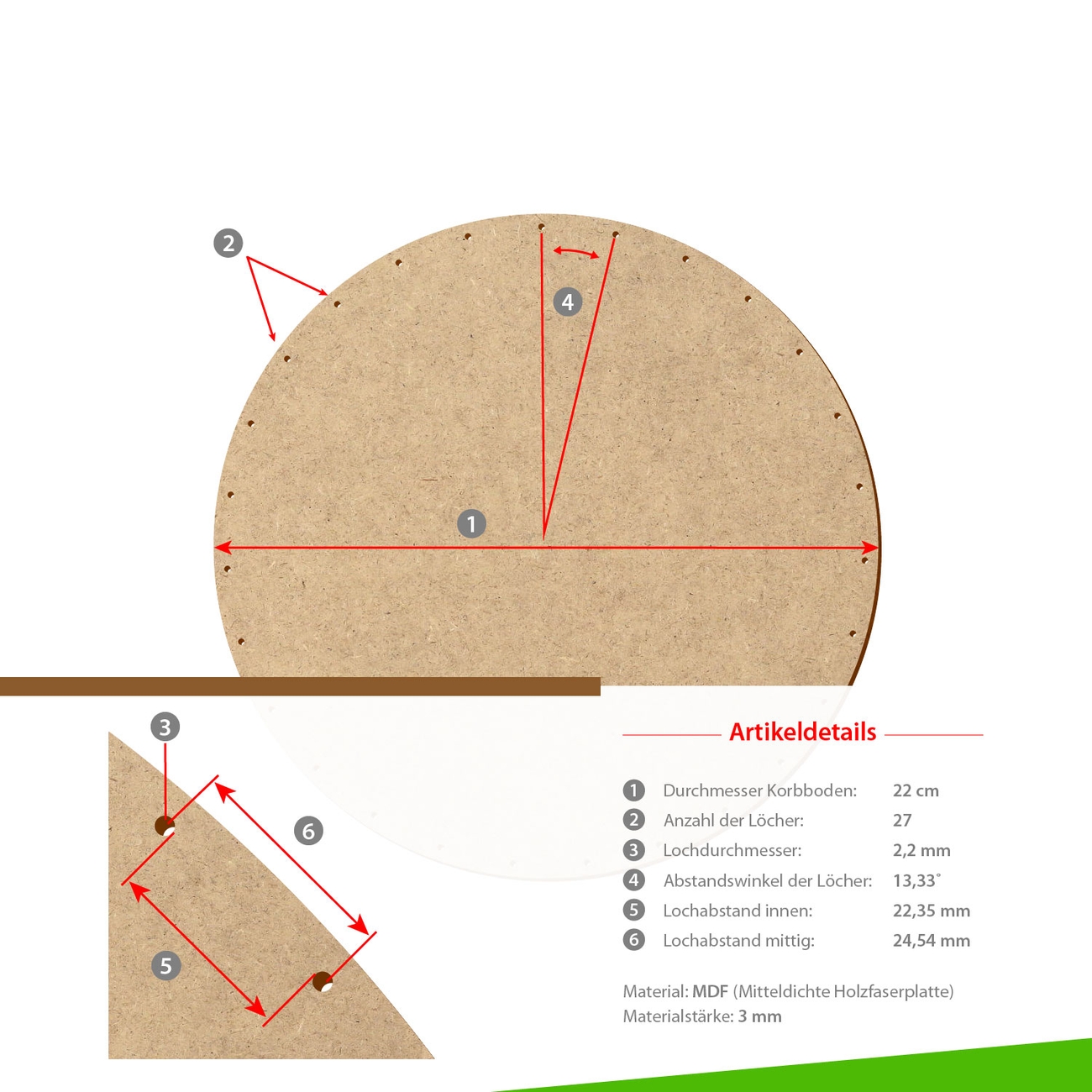 Unsere Korbböden werden aus stabilen und äußerst robusten MDF-Holzfaserplatten gefertigt.