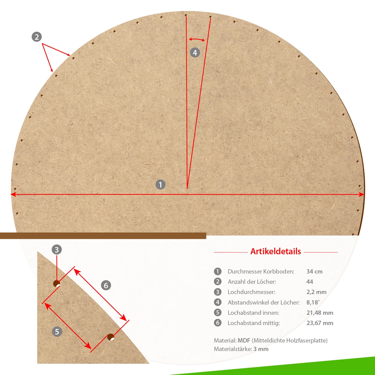Unsere Korbböden werden aus stabilen und äußerst robusten MDF-Holzfaserplatten gefertigt.