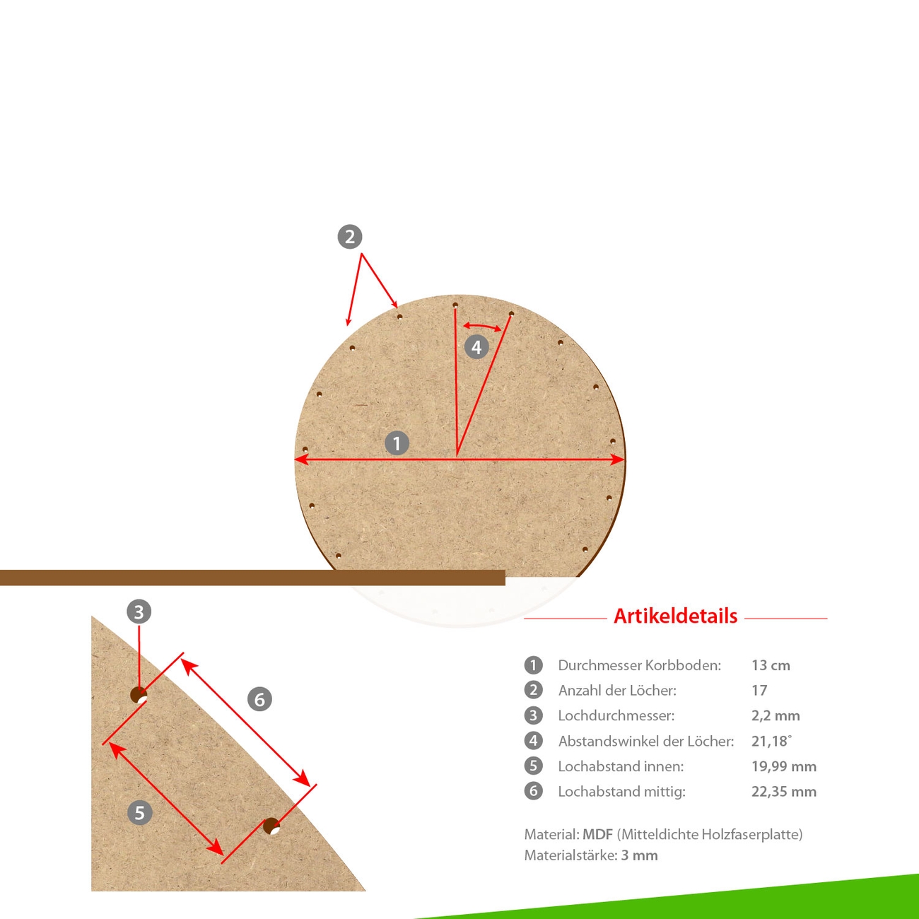 Unsere Korbböden werden aus stabilen und äußerst robusten MDF-Holzfaserplatten gefertigt.