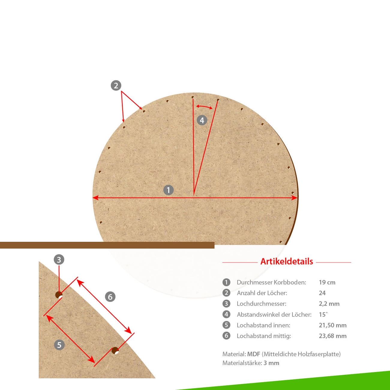 Unsere Korbböden werden aus stabilen und äußerst robusten MDF-Holzfaserplatten gefertigt.
