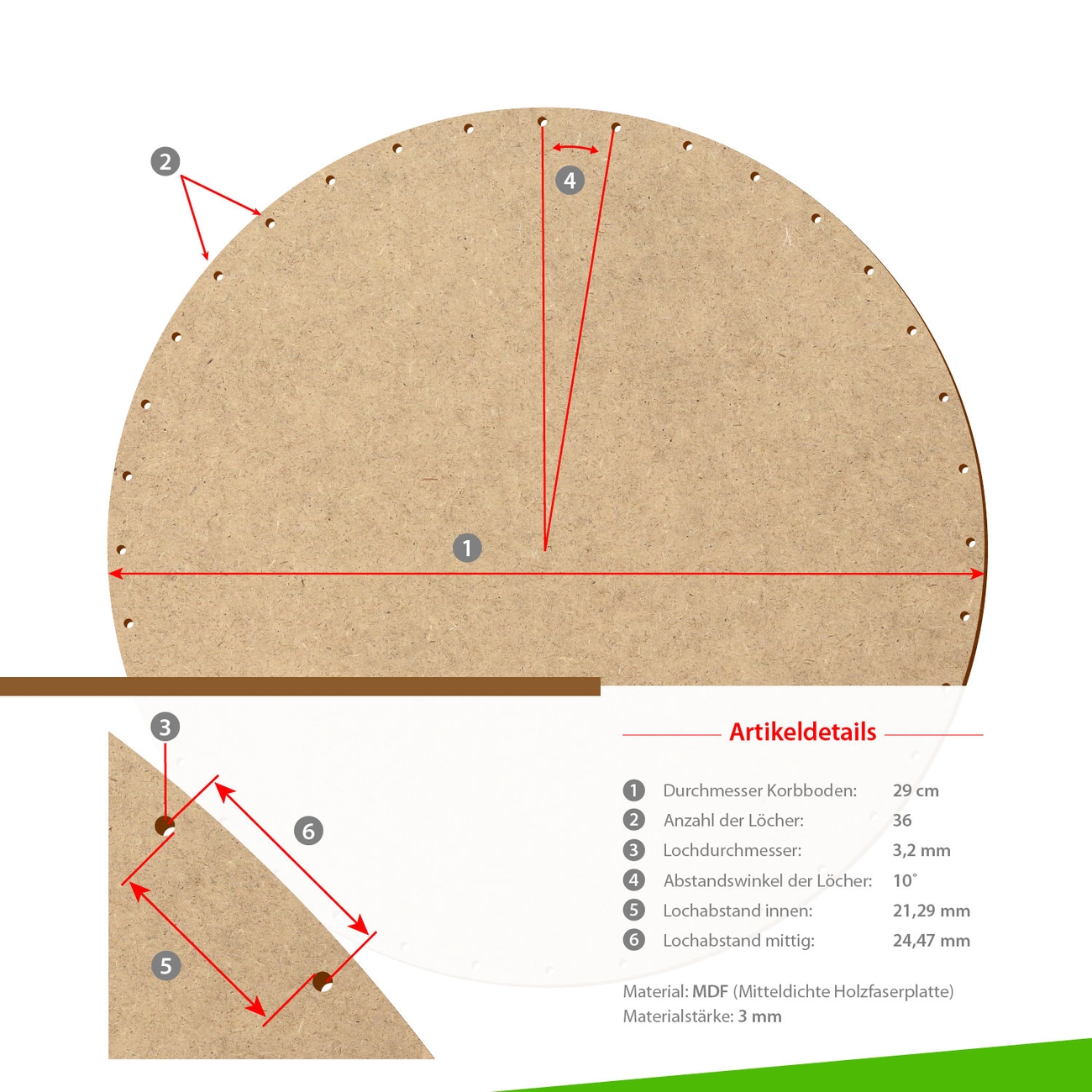 HDF/MDF Korbböden in kreisrunder Ausführung für 3mm Peddigrohr - Größen von 5-35cm wählbar - jeweils mit gerader und ungerader Lochanzahl