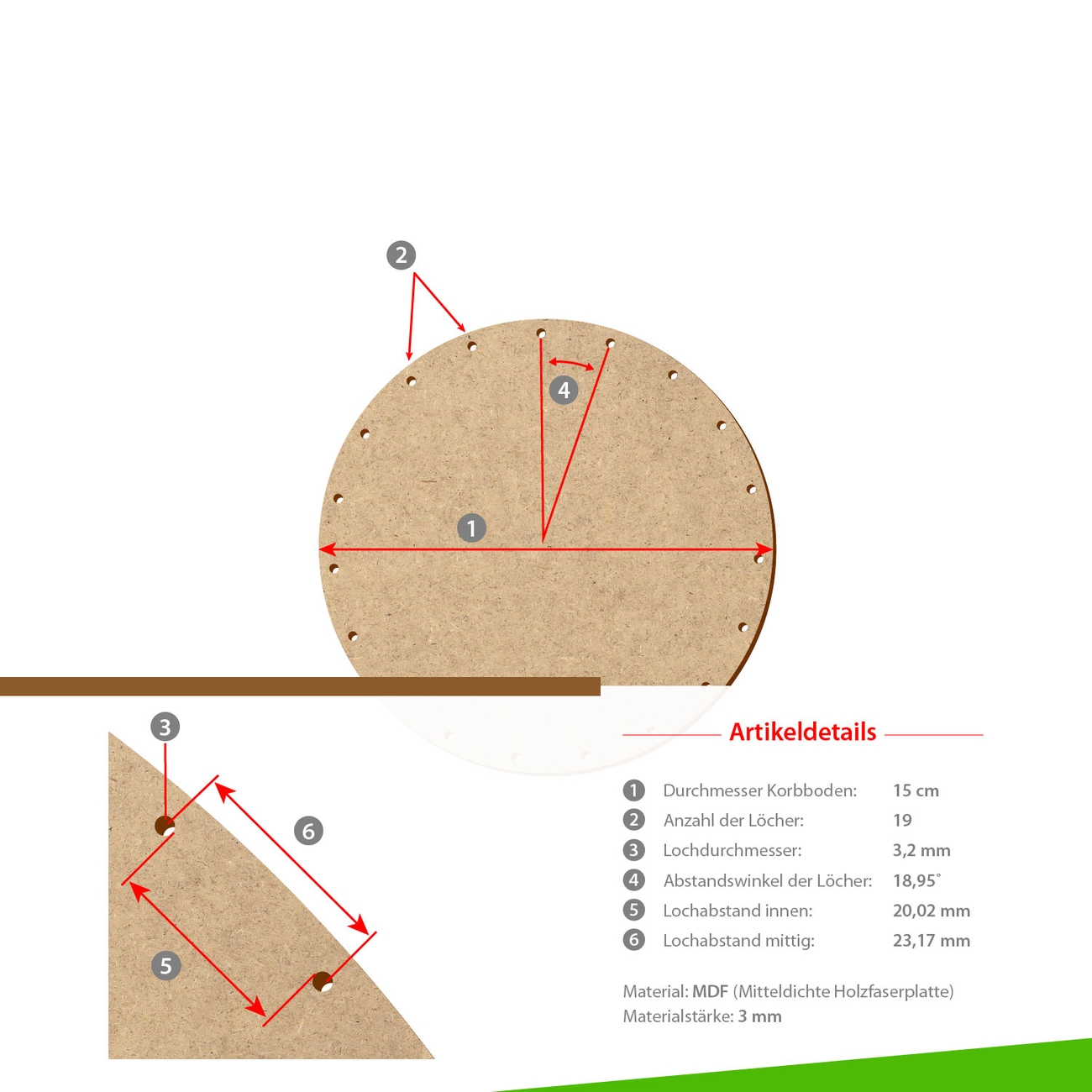 HDF/MDF Korbböden in kreisrunder Ausführung für 3mm Peddigrohr - Größen von 5-35cm wählbar - jeweils mit gerader und ungerader Lochanzahl