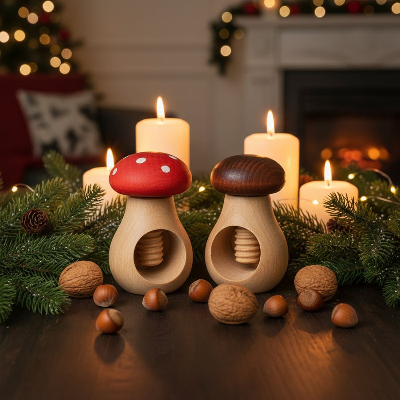Nussknacker Pilz - Fliegenpilz, Marone aus lebensmittelechtem geöltem Buchenholz