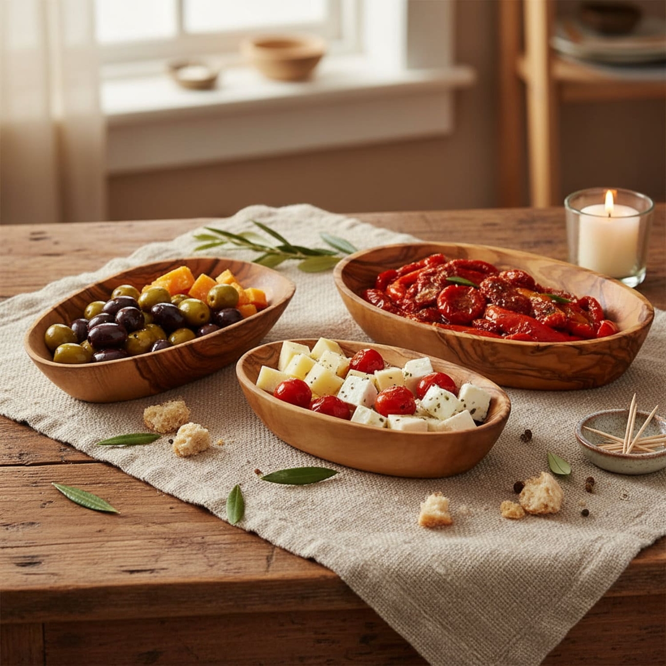 Olivenholz, Olivenholz Schalen, Antipasta Schalen, Baguetteschale, Wellenschale