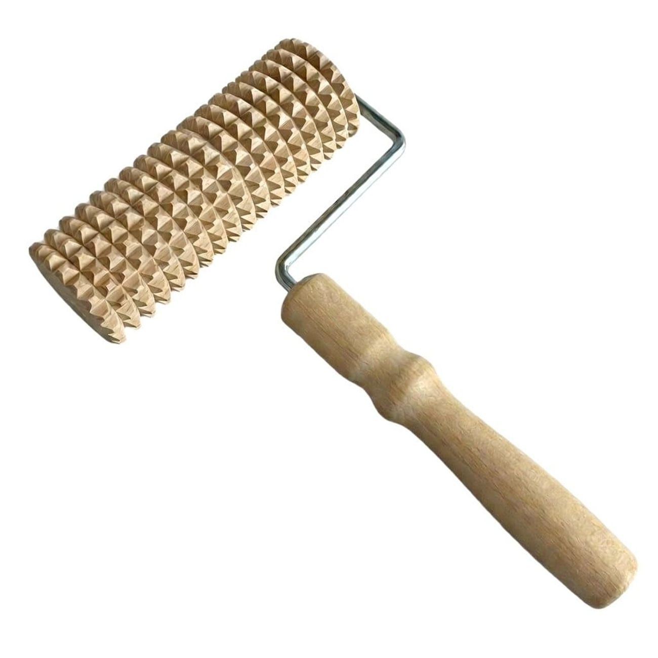Speziell für die Anforderungen der Pferdemuskulatur ausgelegte Holzrolle mit markanten Noppen für eine tiefenwirksame Massage.