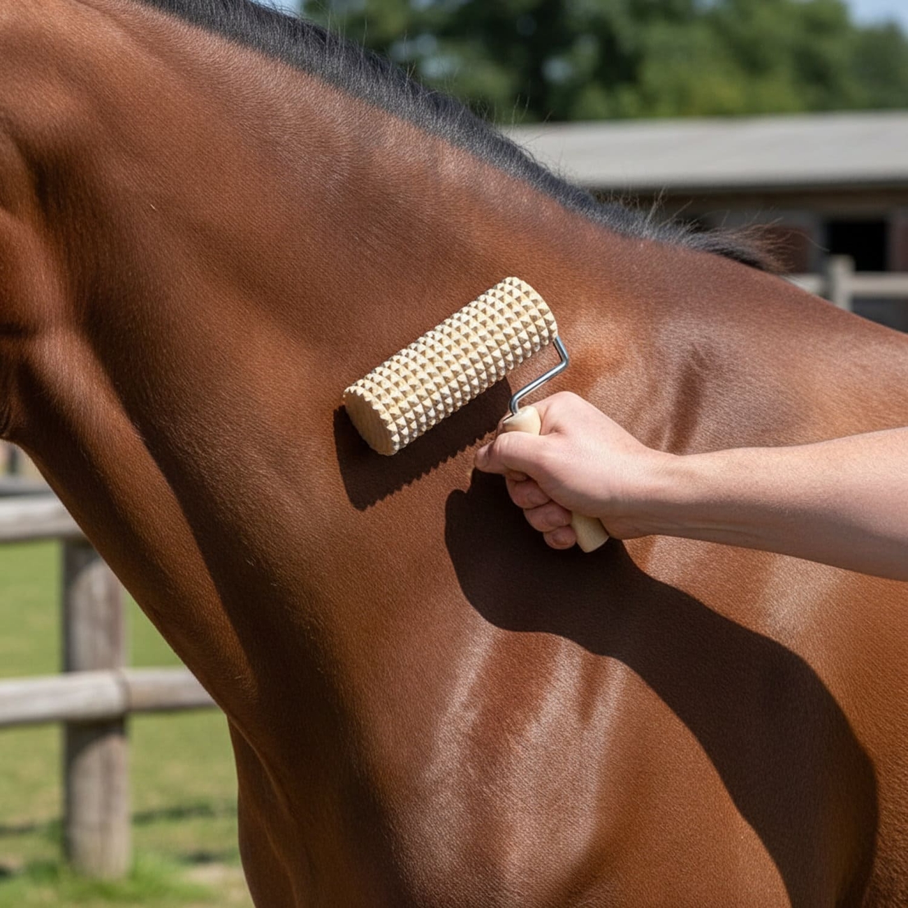 Mit gleichmäßigen Rollbewegungen über Rücken, Kruppe, Hals, Schulter- und Kruppenmuskulatur unterstützt „Ari“ die Lockerung verspannter Muskelpartien und kann die Durchblutung sowie den Stoffwechsel im Gewebe anregen. Regelmäßige Anwendungen helfen, Faszienverklebungen zu lösen, die Beweglichkeit zu fördern und die Regeneration nach Training oder Belastung zu unterstützen; viele Pferde zeigen dabei typische Entspannungsreaktionen wie Kauen, Gähnen oder ein weicheres Auge.