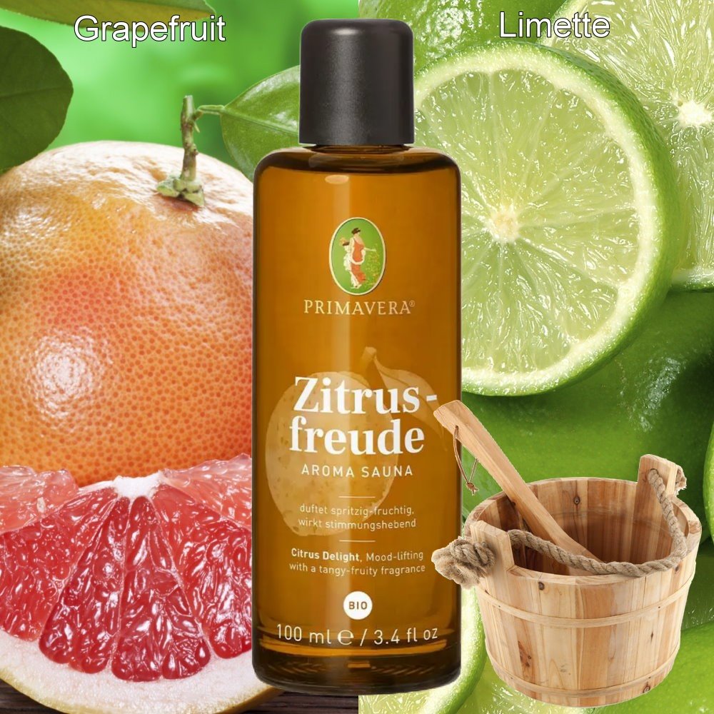 Diese Duftkombination verstärkt die wohltuende Wirkung der Sauna mit strahlendem Zitrusaroma. Wirkt belebend und stimmungshebend. Mit Bio-Alkohol.
