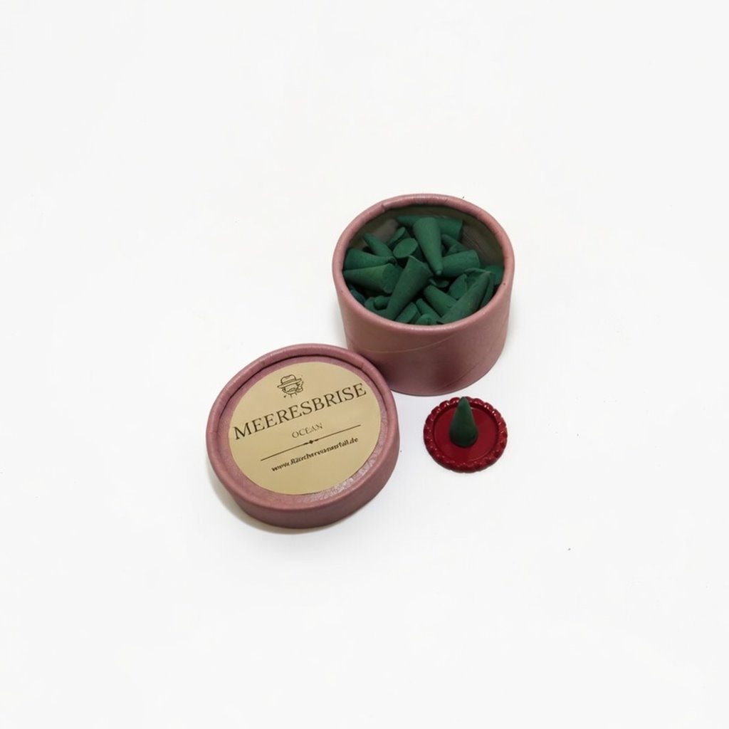 Klassische Räucherkerzen „Meeresbrise“ – ca. 50 Stück inkl. Metall-Untersetzer