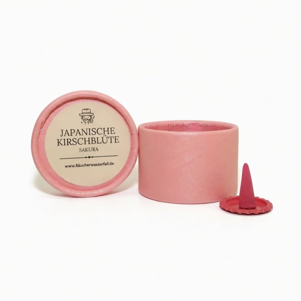 Klassische Räucherkerzen „Japanische Kirschblüte“ – ca. 50 Stück inkl. Metall-Untersetzer