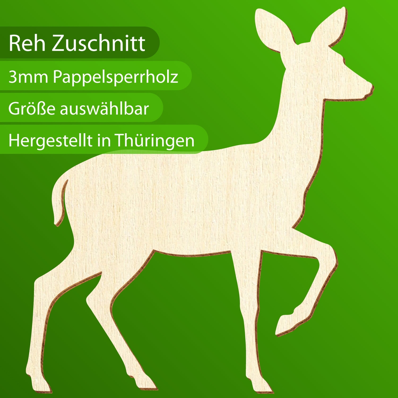 Bütic Reh V2 Silhouette aus Sperrholz - 5-50cm Höhe - Einzeln oder als Set mit 10, 25, 50 oder 100 Stück - Deko Basteln