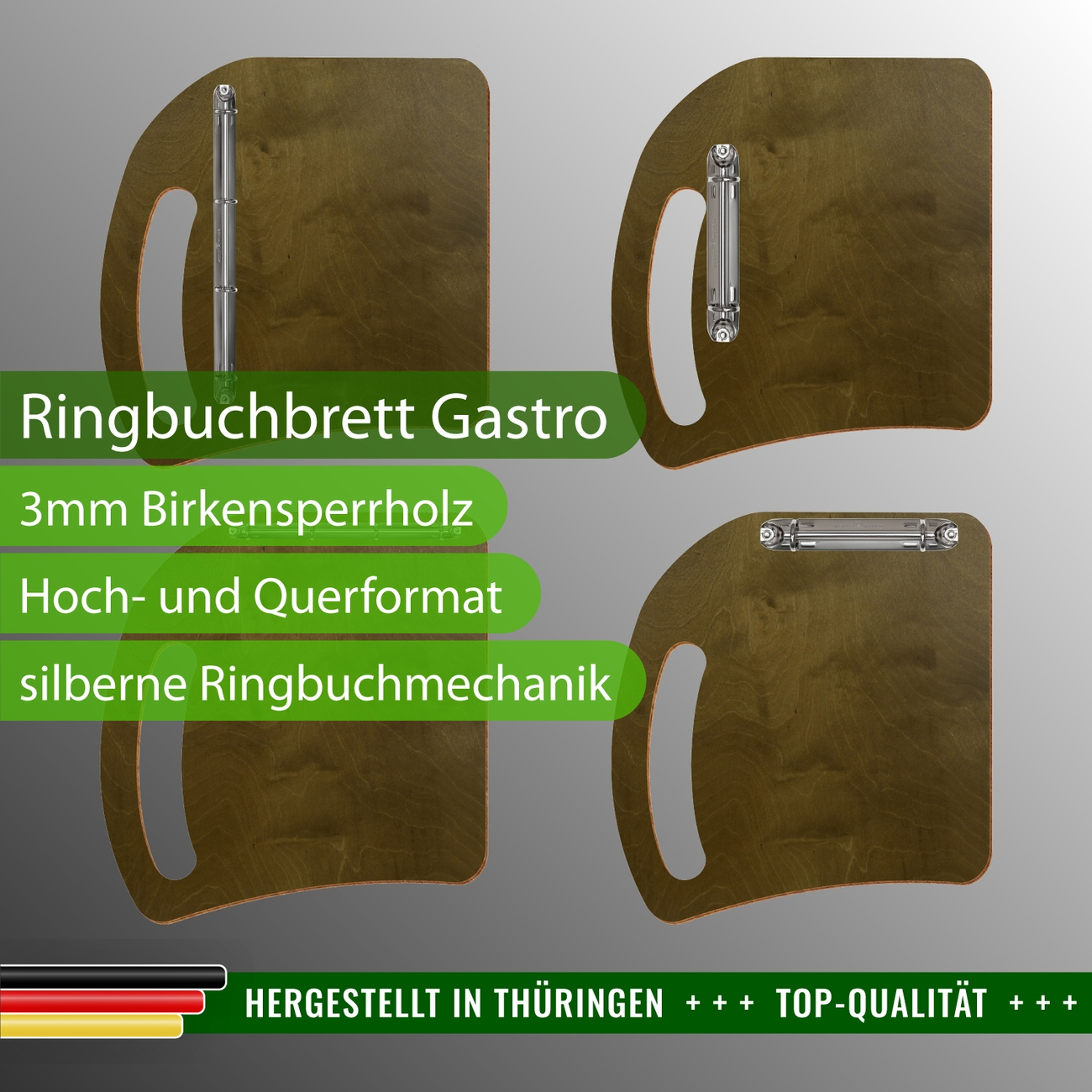 Bütic Ringbuchbrett Gastro für A3, A4 oder A5 Format, hoch oder quer.