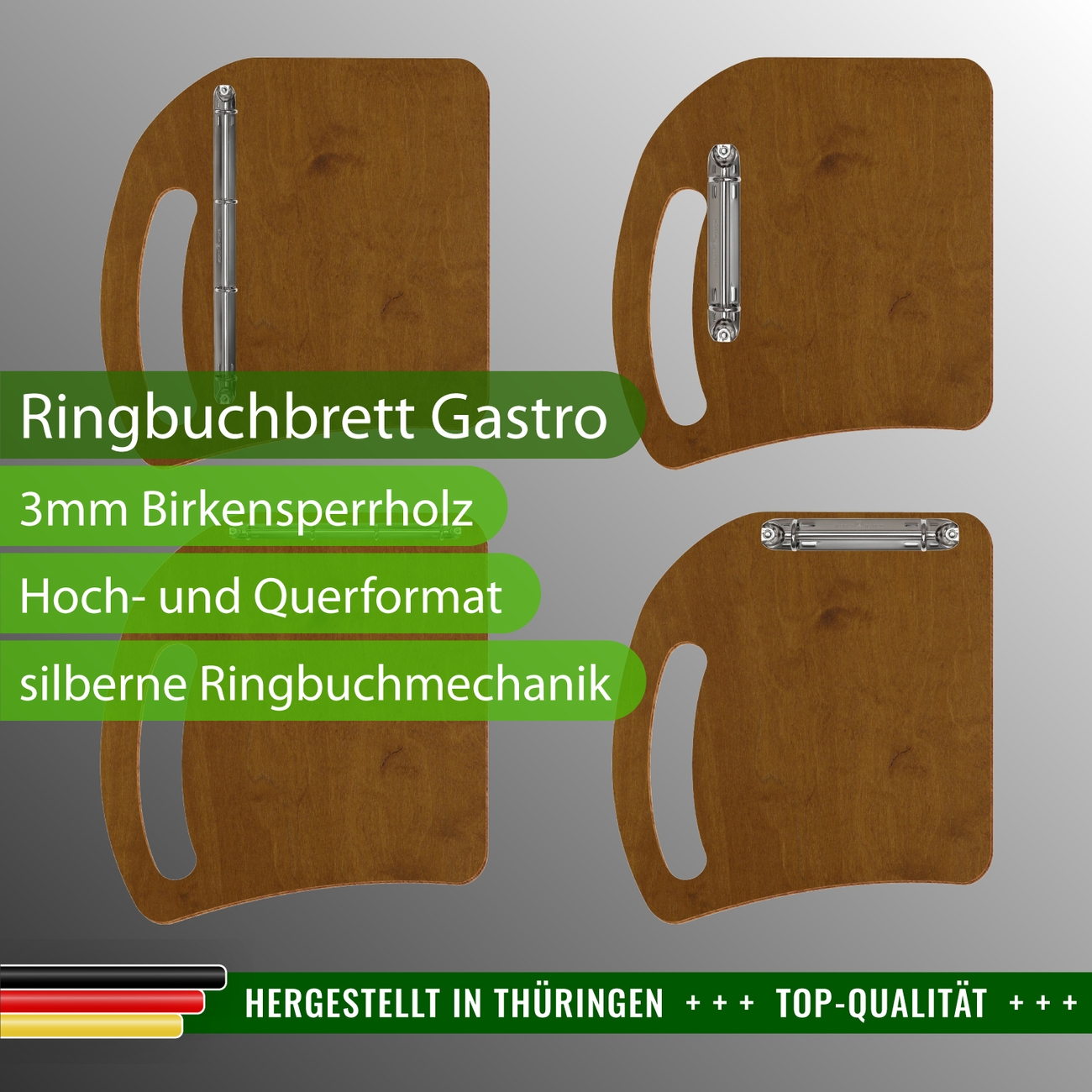 Bütic Ringbuchbrett Gastro für A3, A4 oder A5 Format, hoch oder quer.