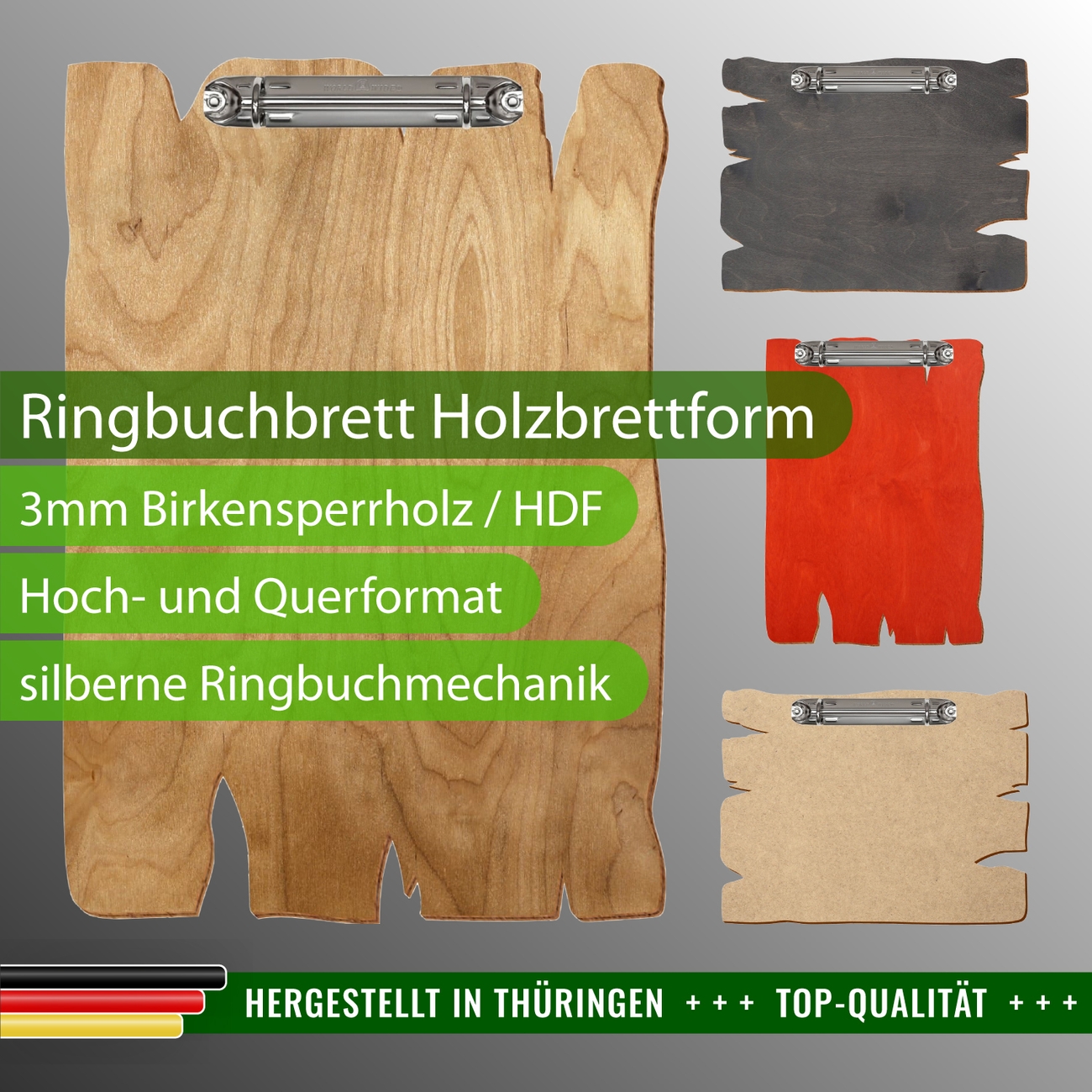 für DIN A3, A4, A5 im Hoch- oder Querformat. Unsere Bütic Holz Ringbuchbretter aus 3mm Birkensperrholz sind mit Klarlack versiegelt.
