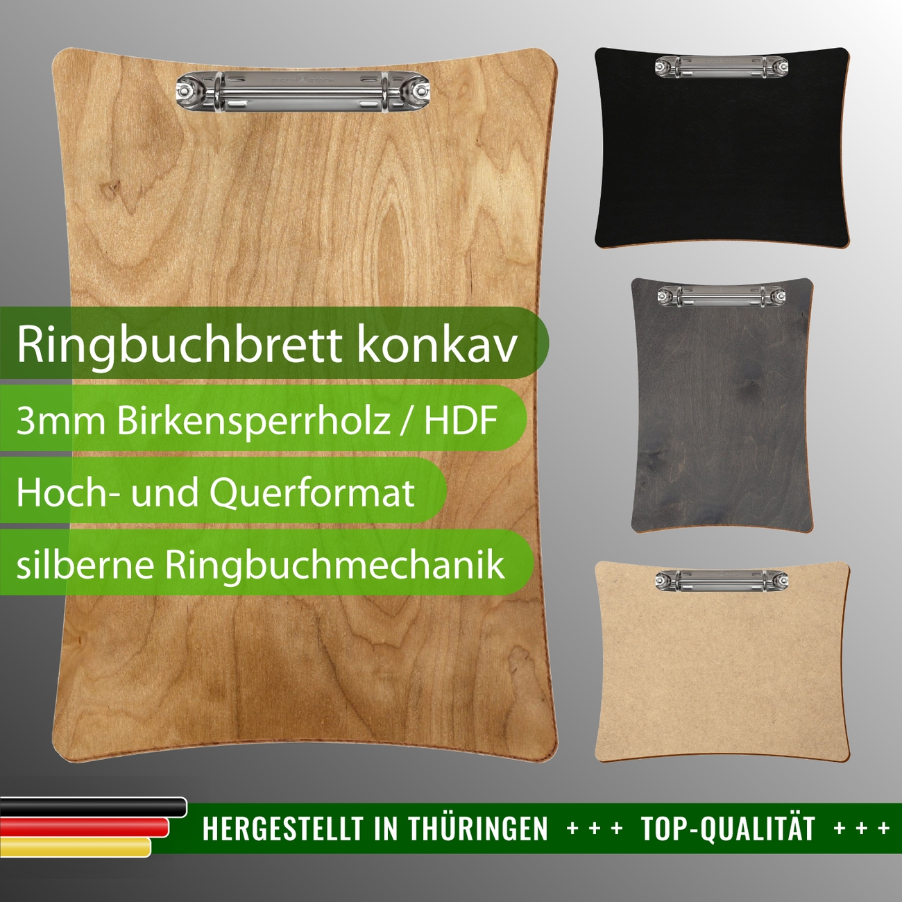 + Lieferumfang: ein Ringbuchbrett in ausgewählter Größe und Farbe