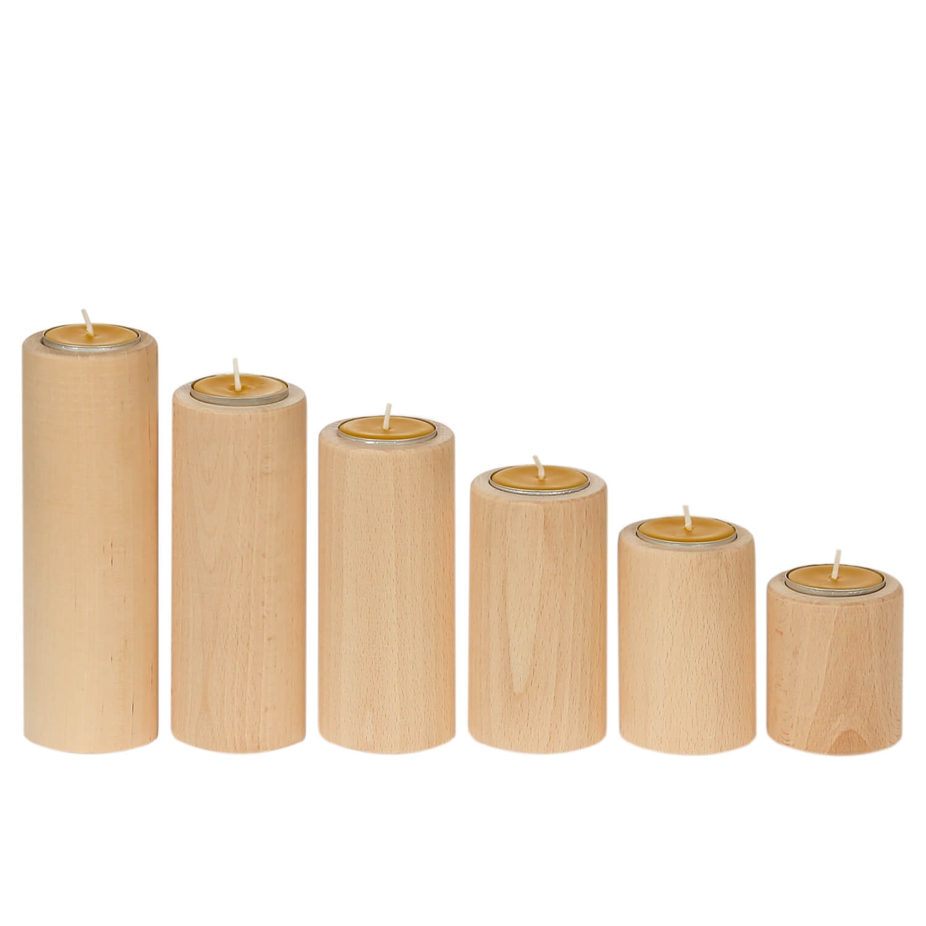 Runder säulenförmiger Teelichthalter aus dekorativem Hartholz - Erhältich in der Größe (Höhe) 6cm, 8cm, 10cm, 12cm, 14cm und 16cm - Einzeln und im Set mit allen sechs Größen