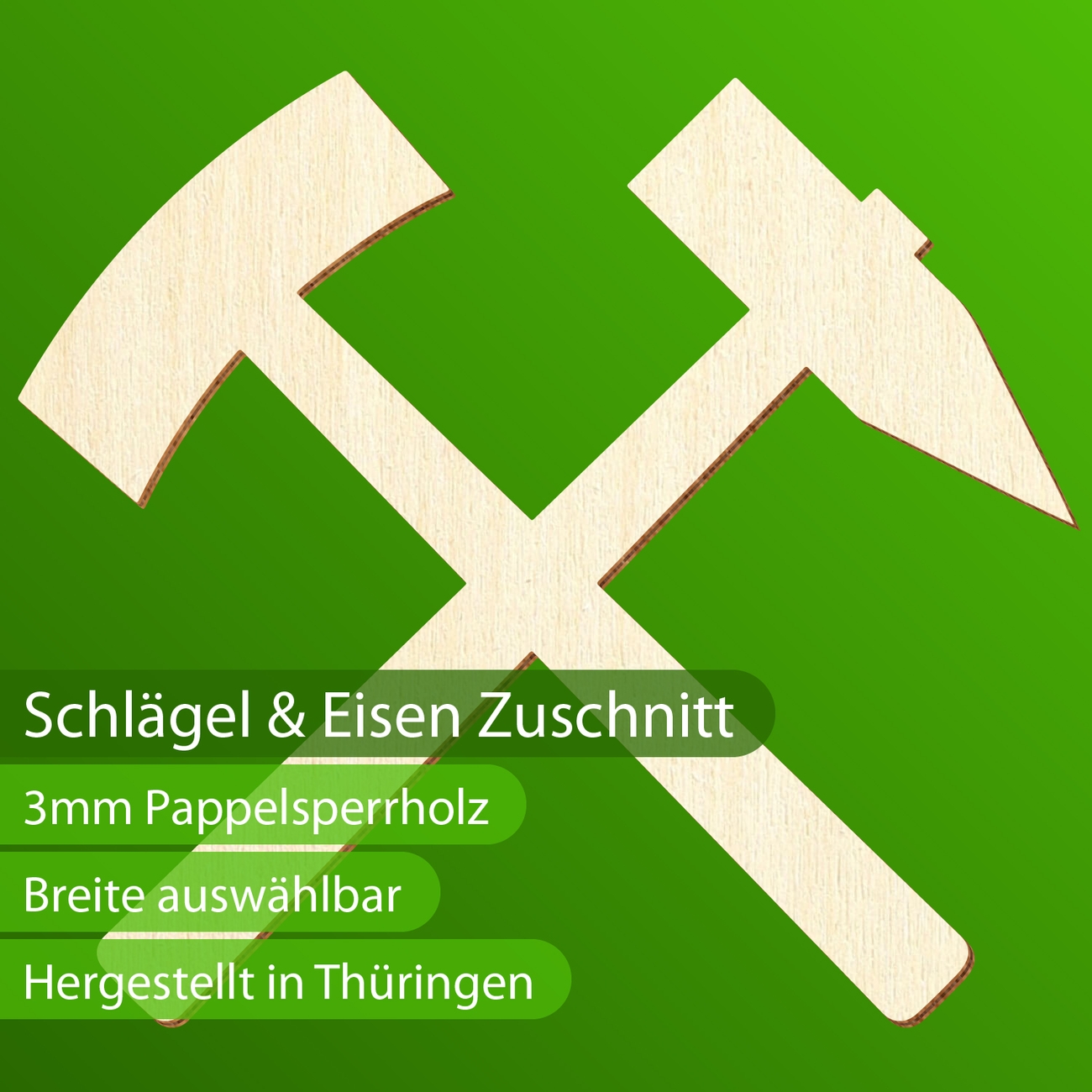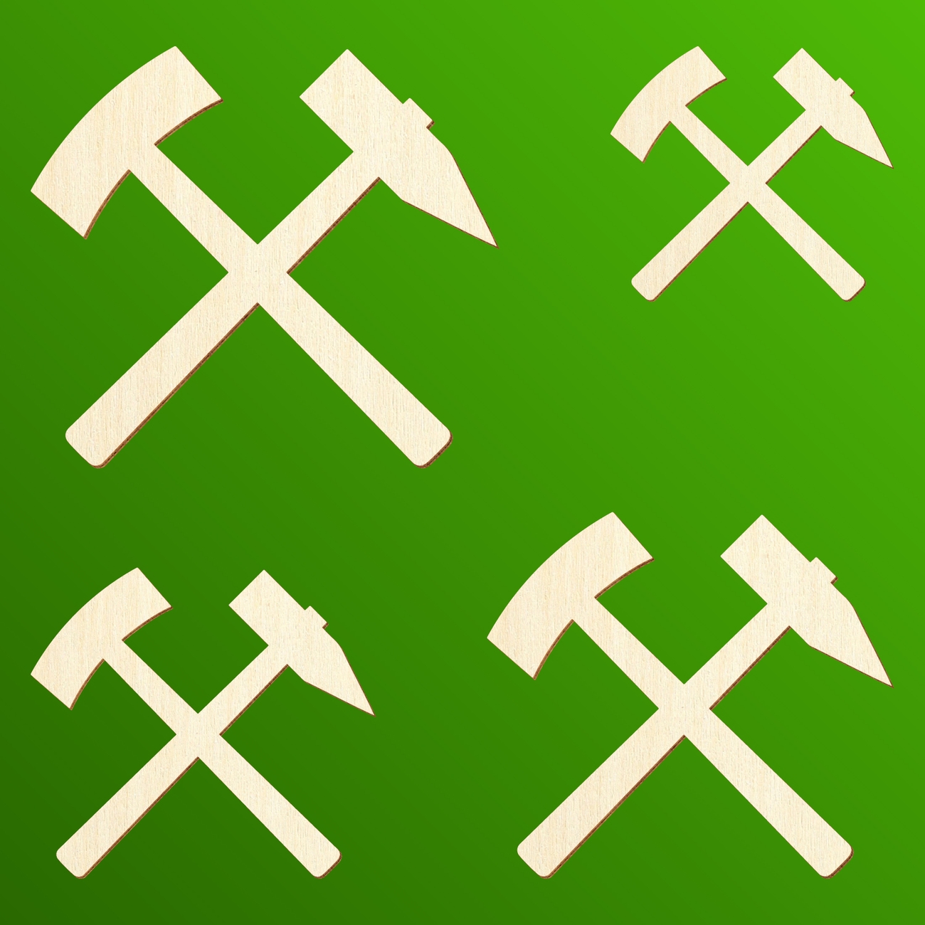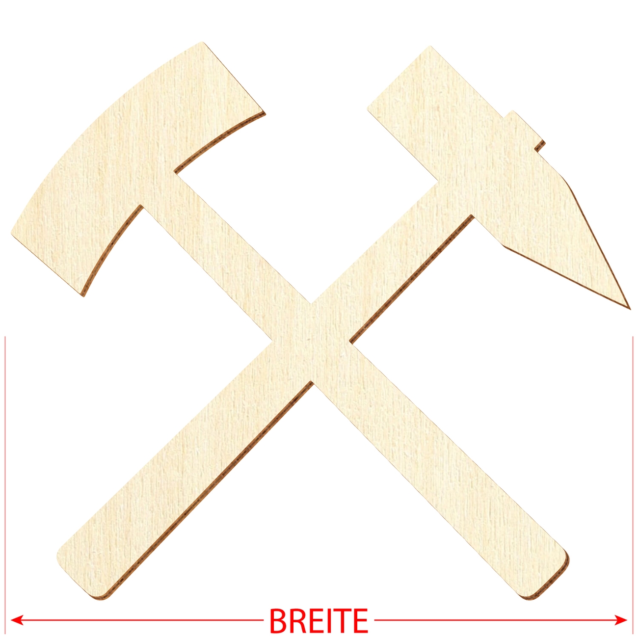 Bergbausymbol aus 3mm starkem, unbehandeltem Pappelsperrholz. Von 5-50cm Breite sowie einzeln oder als Set erhältlich.
