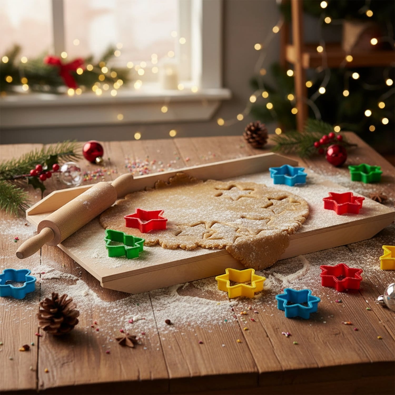 Dieses Teigbrett ist aus robustem Mehrschichtholz, dadurch auch verzugsfrei. Mit Anschlagsleiste vorn und hinten