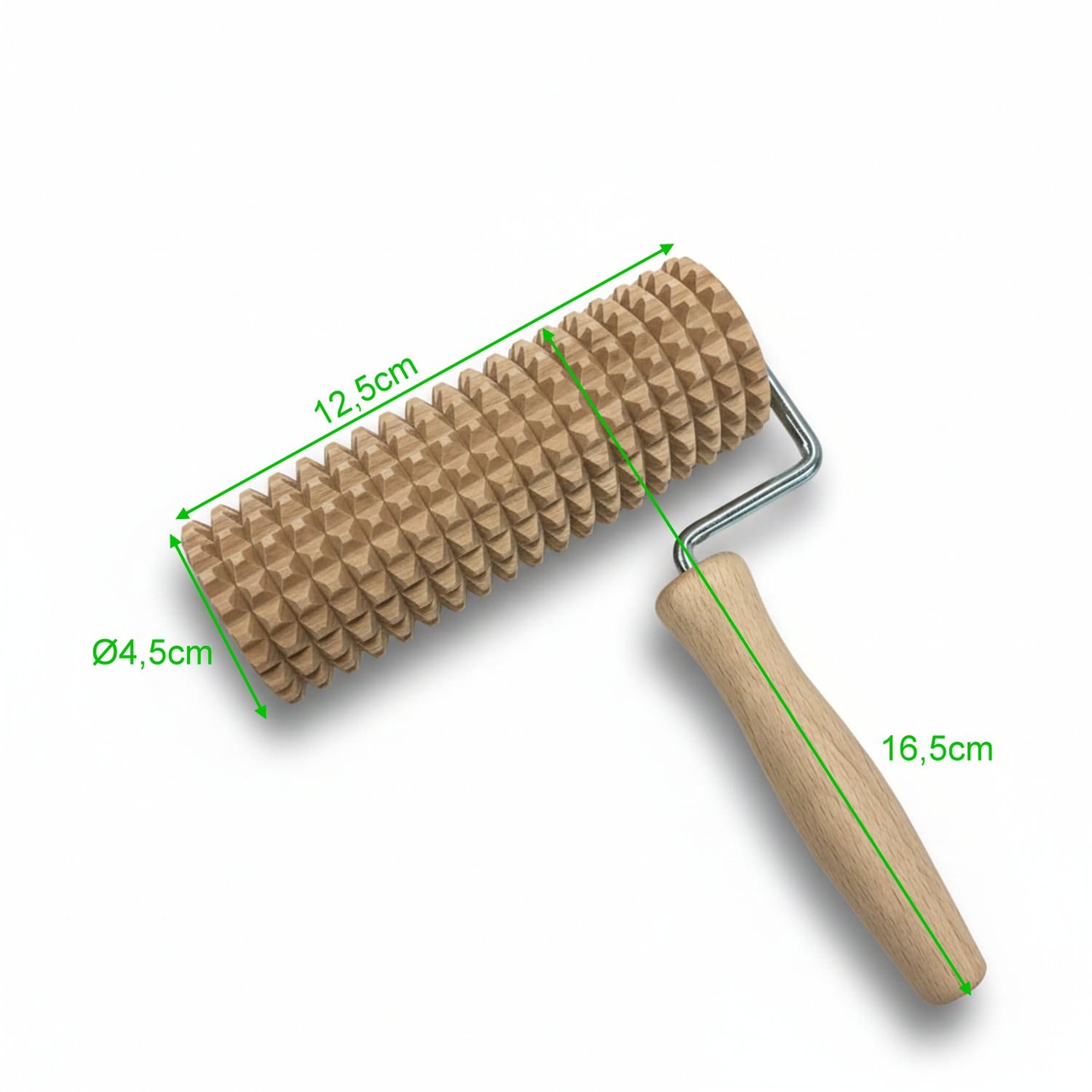 Größe der Massagerolle: Rollenbreite beträgt 12,5cm, der Ø4,5cm, Gesamthöhe mit Griff sind 16,5cm.